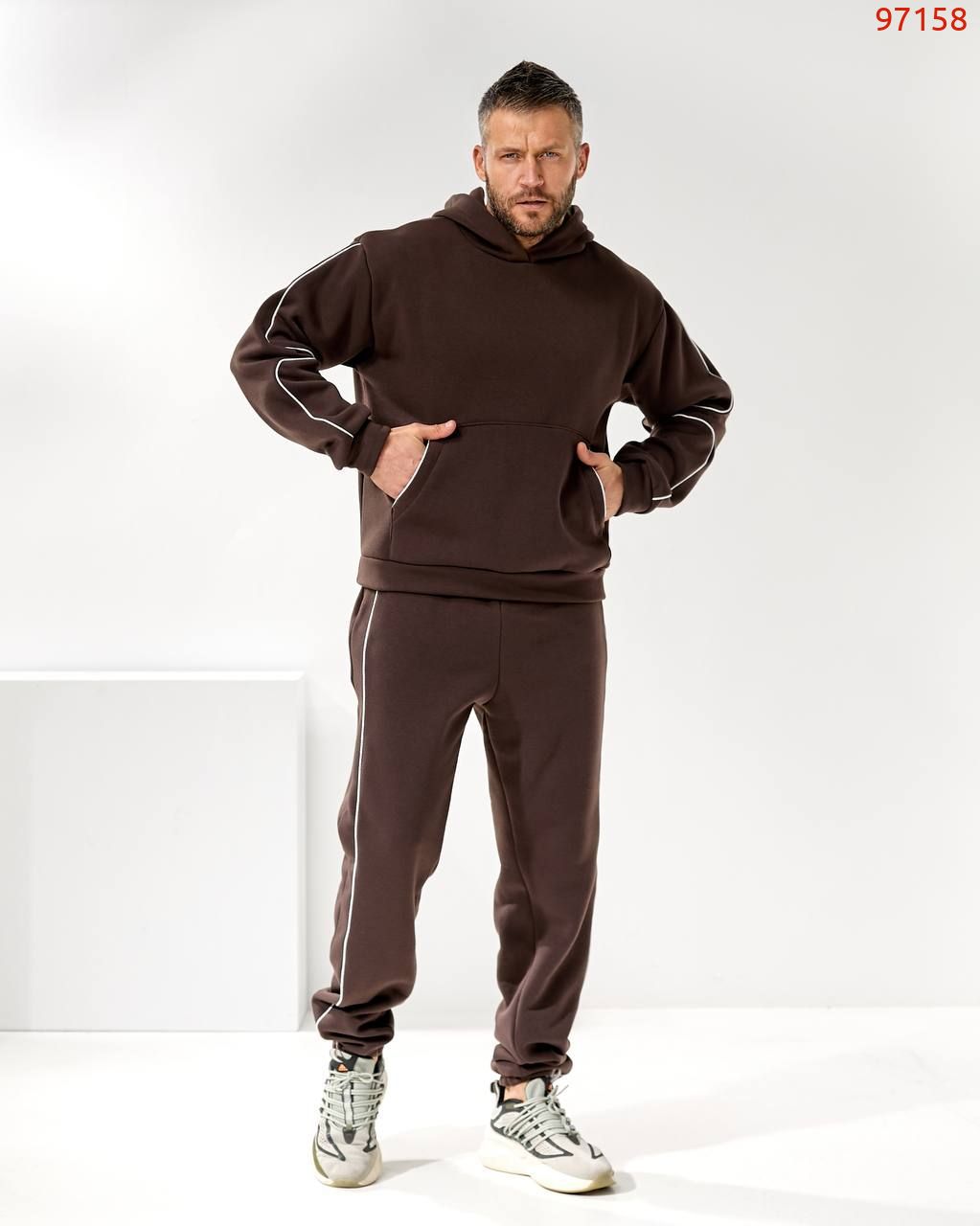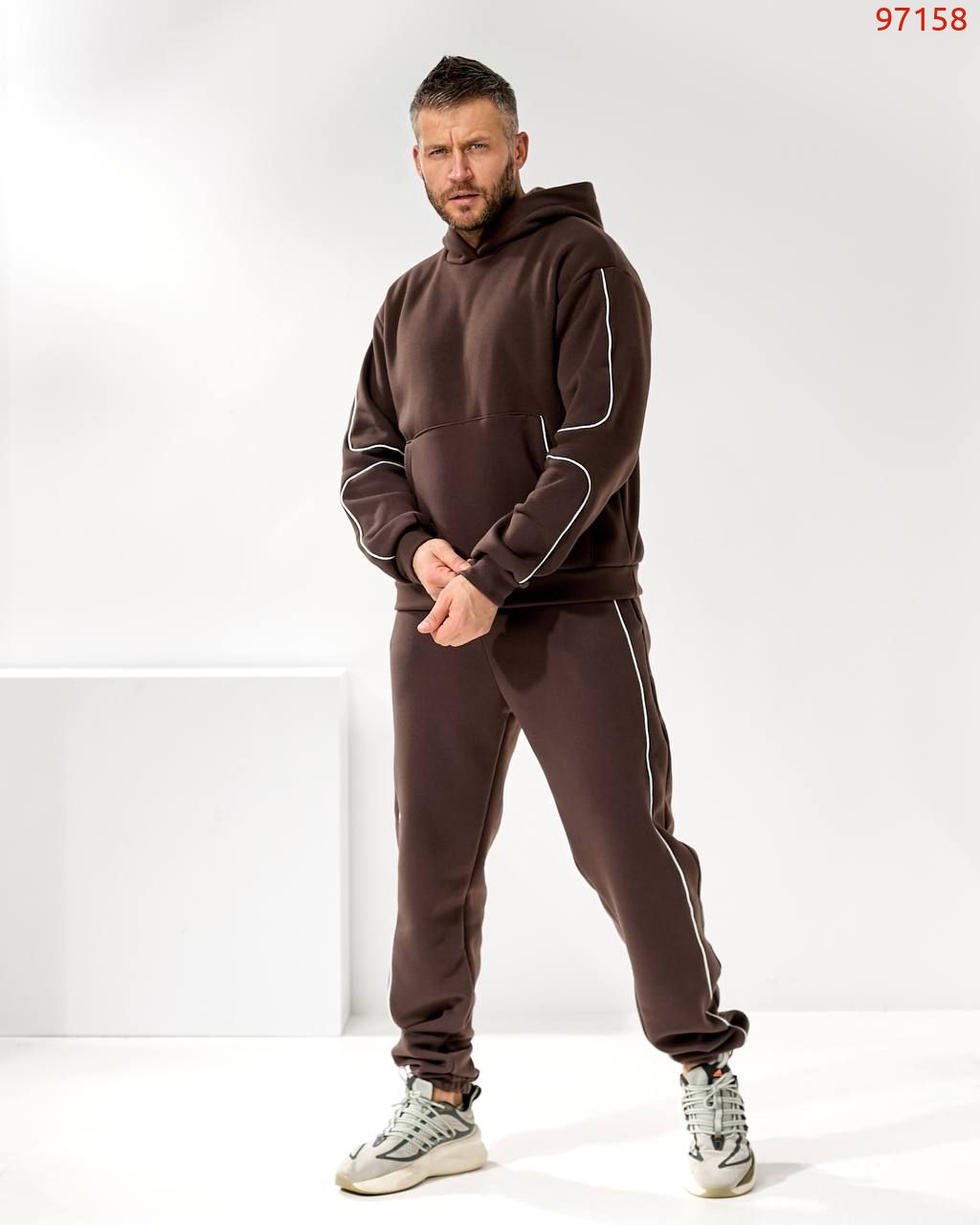 Чоловічий костюм з трьох нитки – це втілення комфорту і стилю в повсякденному одязі. М'яка тканина дбайливо зберігає тепло, дозволяючи шкірі дихати, а сучасний крій підкреслює мужність і свободу рухів. Костюм ідеально підходить як для прогулянок у прохолодну погоду, так і для домашнього затишку. Лаконічний дизайн робить його універсальним рішенням: він однаково органічно виглядає і в розслабленому, і в більш активному образі.