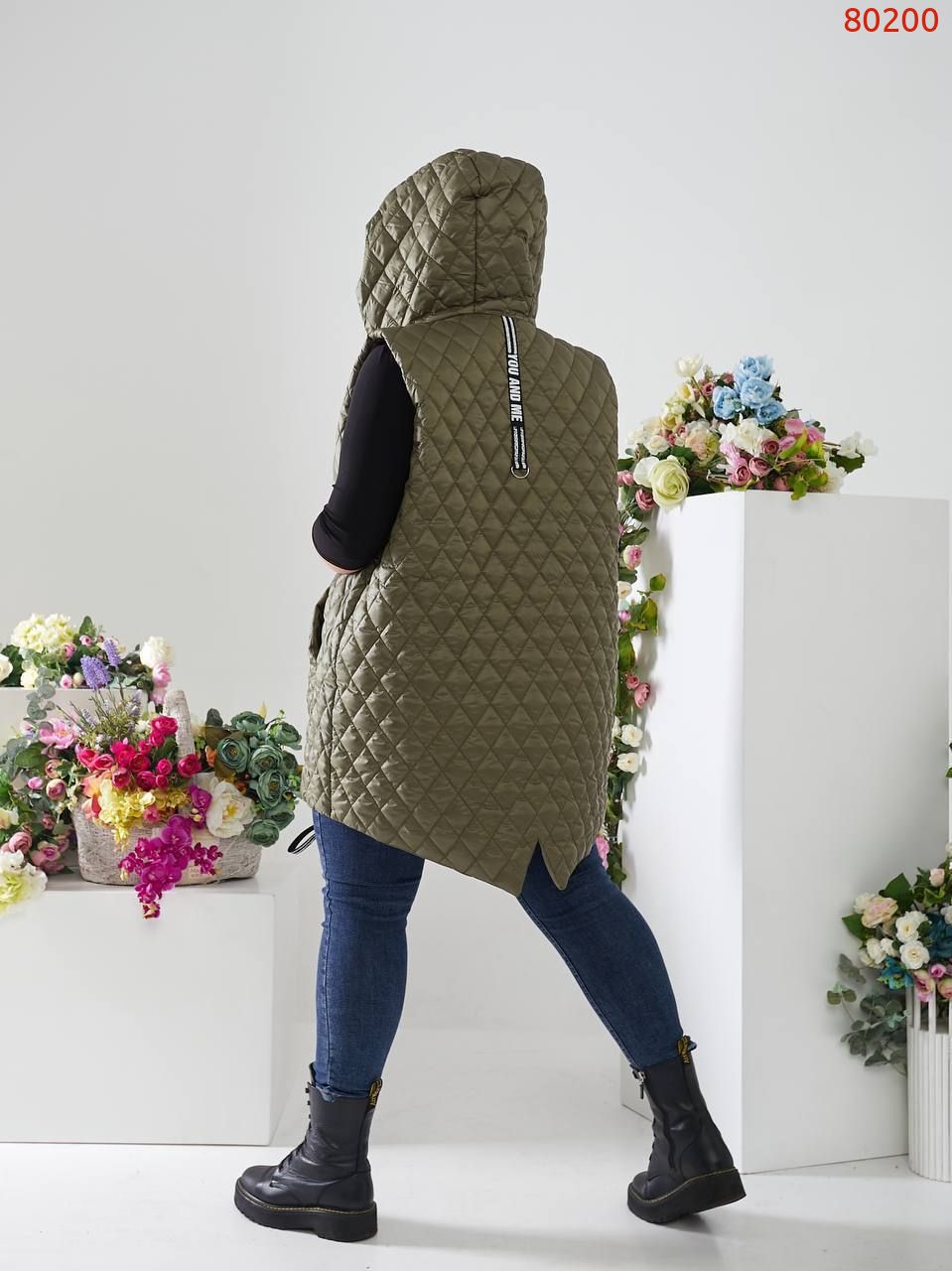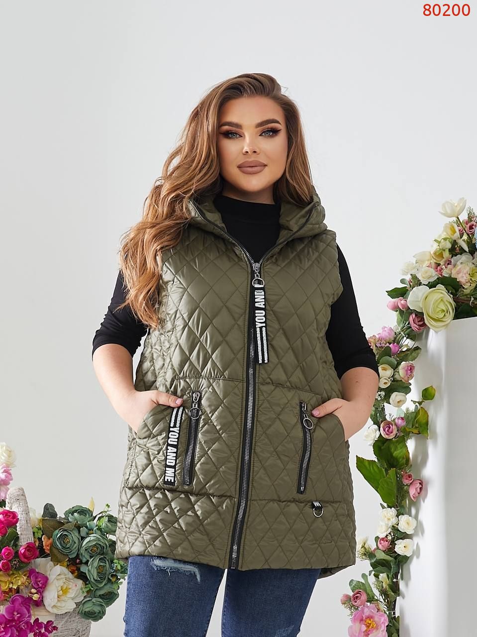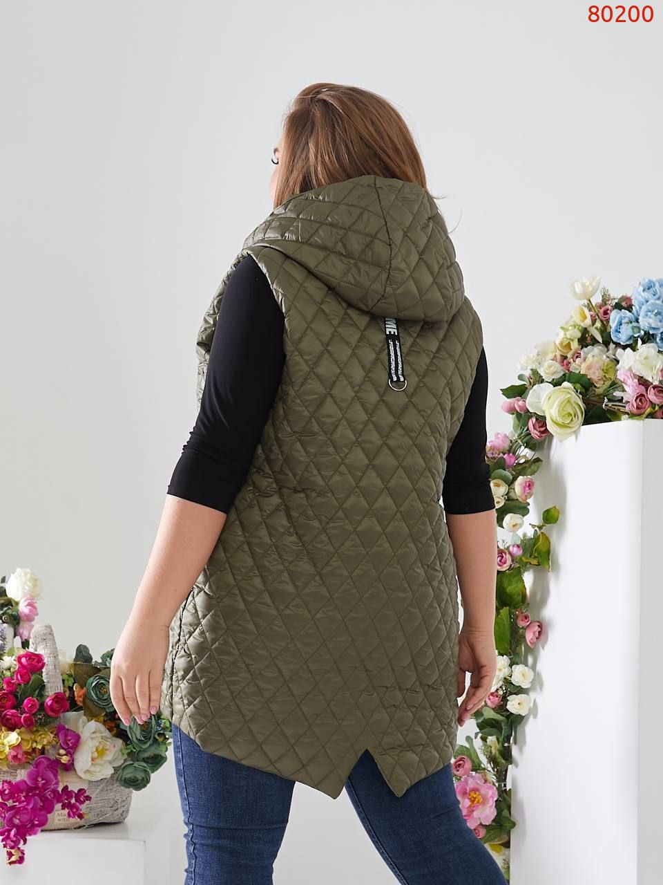 Стильна стегана жилетка з накладними кишенями, зручний глибокий капюшон, якісна фурнітура.