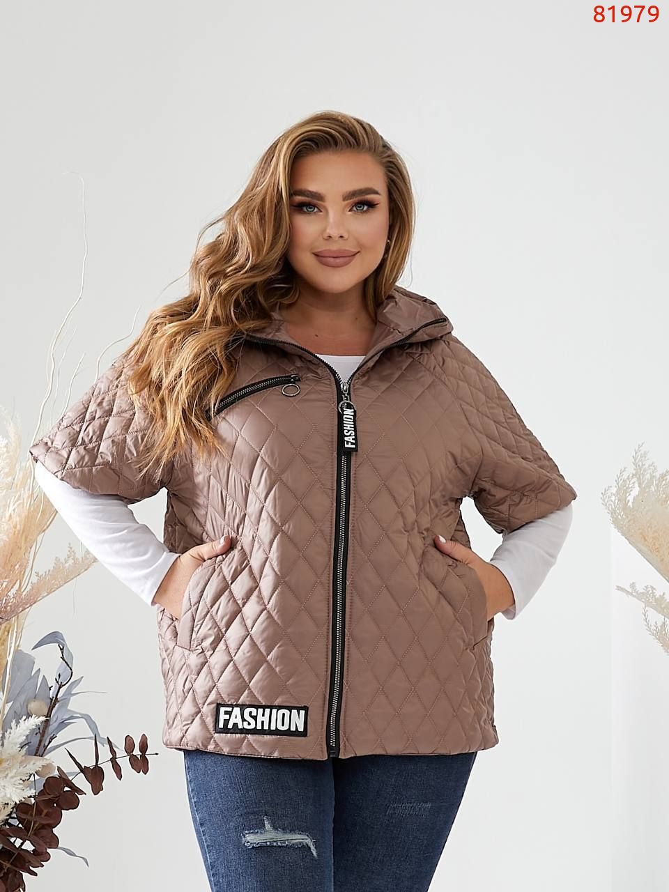 Стильна стегана жилетка з рукавом, зручний глибокий капюшон, кишені, якісна фурнітура.