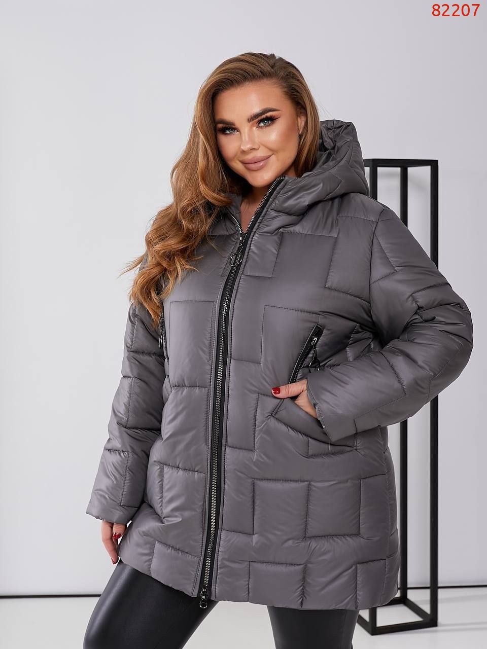 Стильна стьобана куртка прямого крою, зручний, глибокий капюшон, якісна фурнітура, нашивка