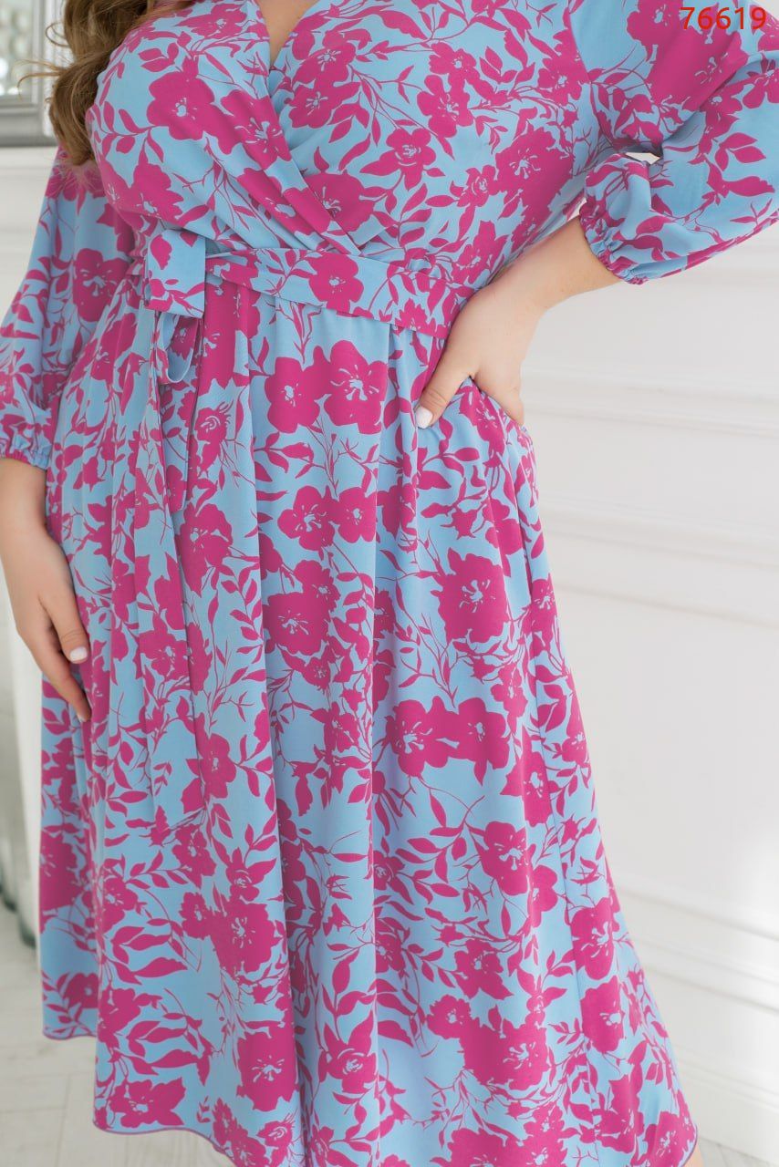 Ця сукня стане вашим незамінним другом, будь то вечірні заходи, романтичні прогулянки чи офісний день. Має бездоганну посадку завдяки гумці на талії, яка чудово підкреслить вашу фігуру. Ліф сукні підшитий на запах, що надає йому чарівний акцент і вишуканість. Рукави 3/4, доповнені гумкою, надають елегантності сукні та роблять її актуальною у будь-яку пору року. Не менш важливою деталлю є врізні кишені з боків, які не тільки підкреслюють дизайн, але й надають практичності вашому образу. Ви зможете легко зберегти свої необхідні речі під рукою, не втрачаючи стиль та грацію.