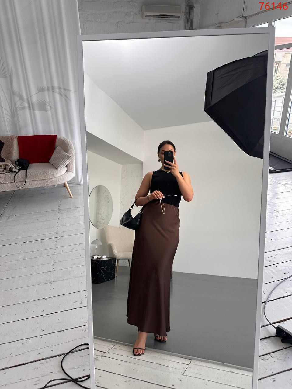 Деталі: спідниця покроєна по діагоналі за рахунок чого добре приймає форму тіла, з поясом на резинці, без кишень.