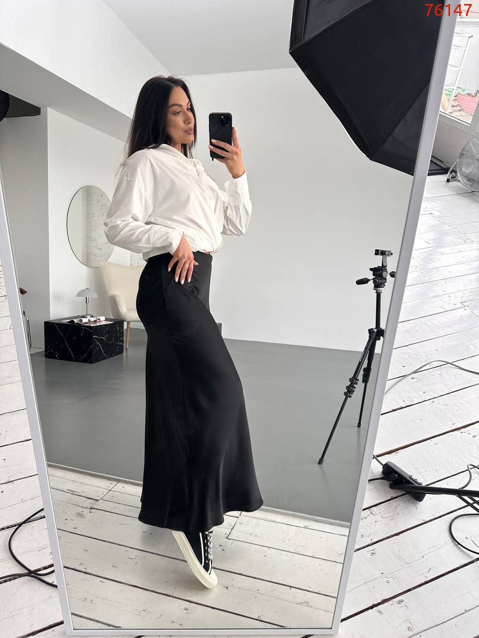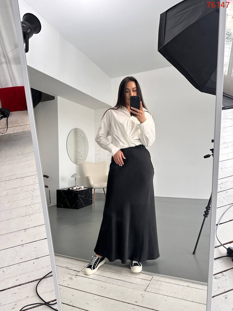 Деталі: спідниця покроєна по діагоналі за рахунок чого добре приймає форму тіла, з поясом на резинці, без кишень.