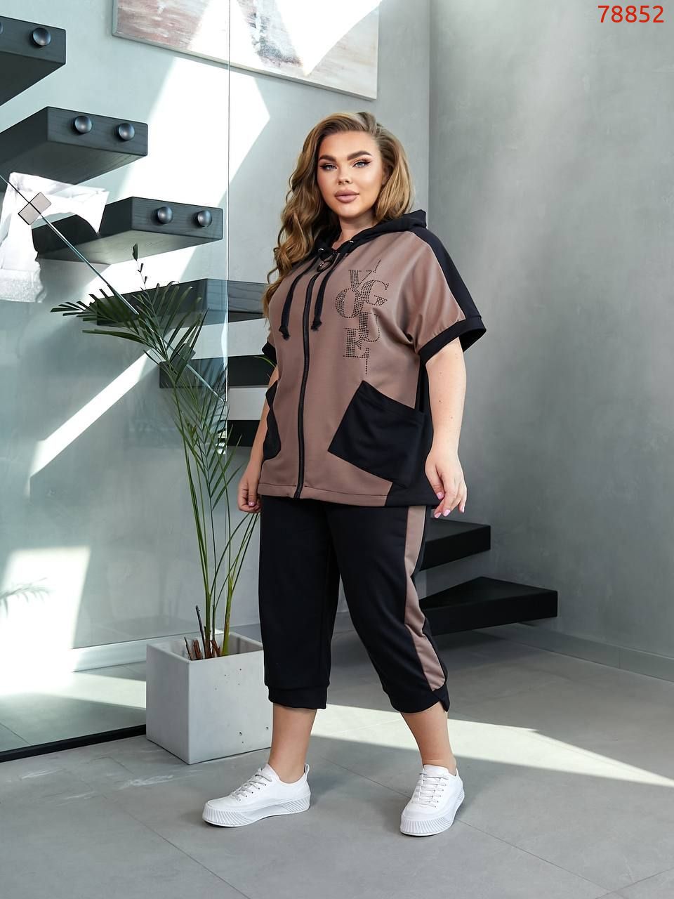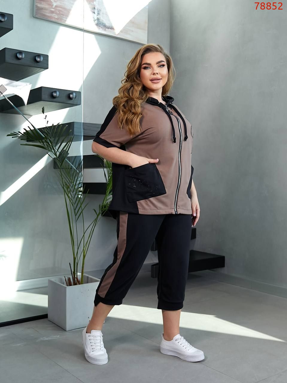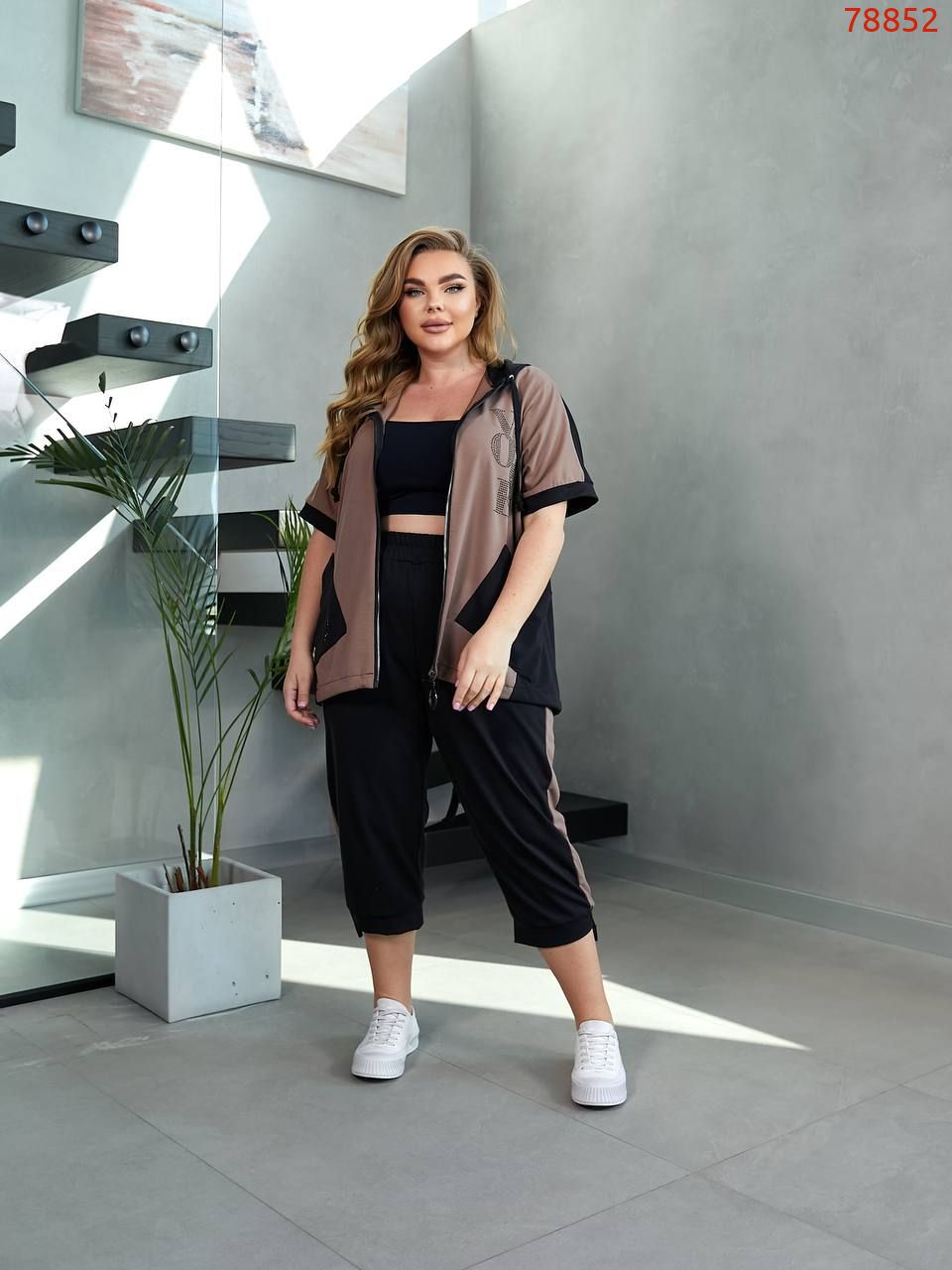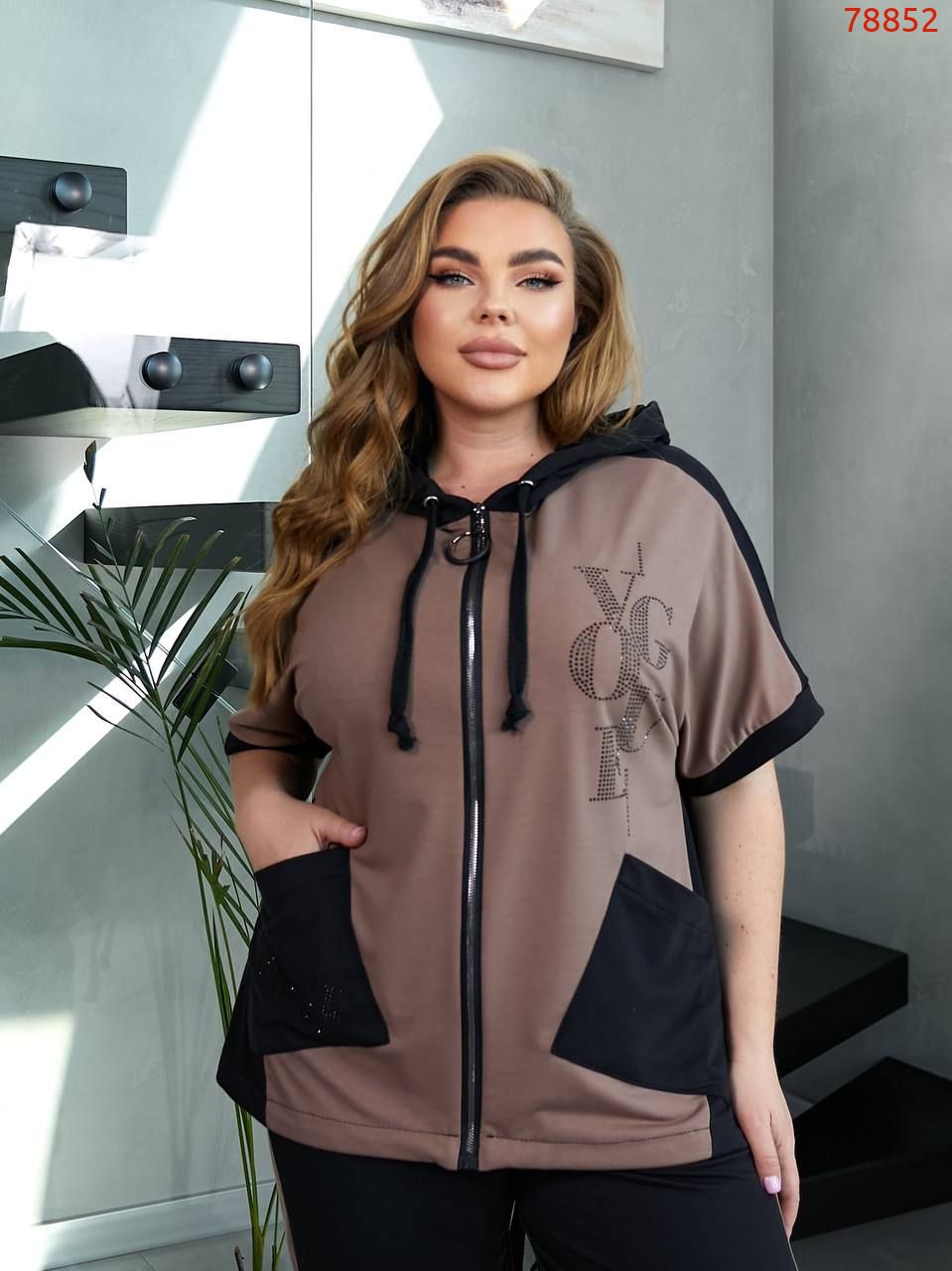 На моделі одягнений розмір 52-54, параметри моделі: 110-86-116, зріст 171 см