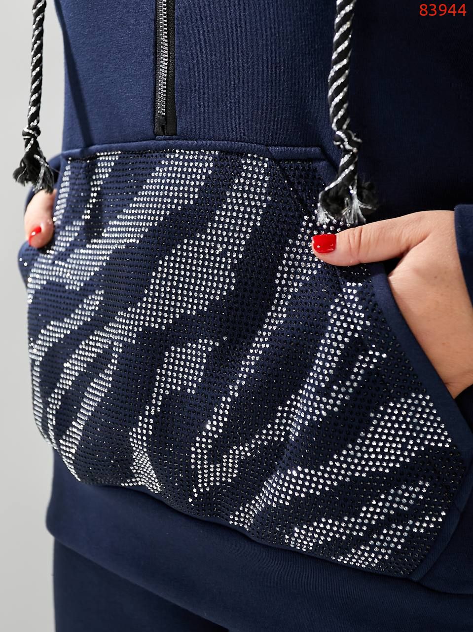 Кофта вільного крою, зручний глибокий капюшон, декорована камінням.