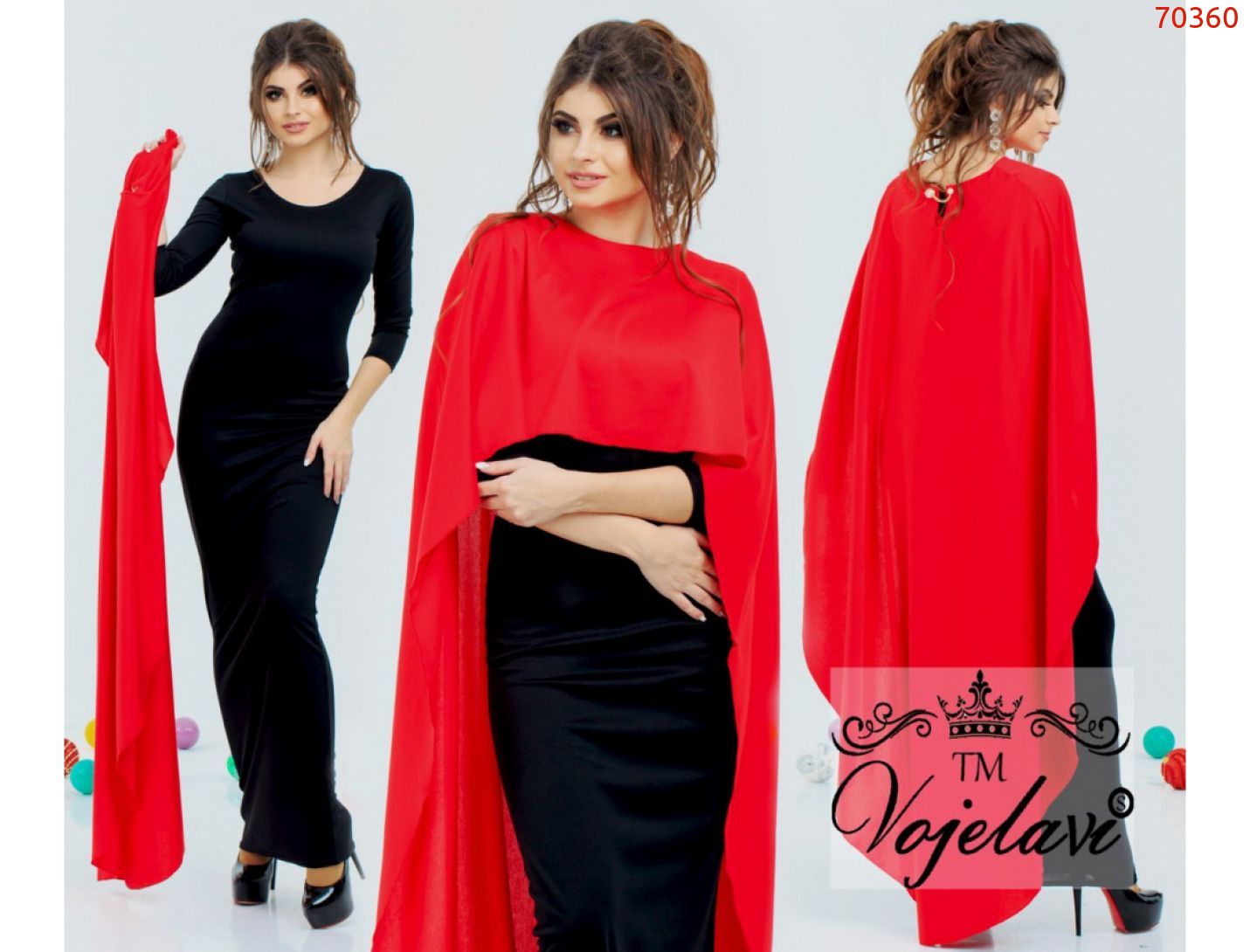 Тканина: французський трикотаж.Довжина сукні: 152см, рукав - 44смНакидка з переду: 30см з заду: 145смЗріст моделі 168см