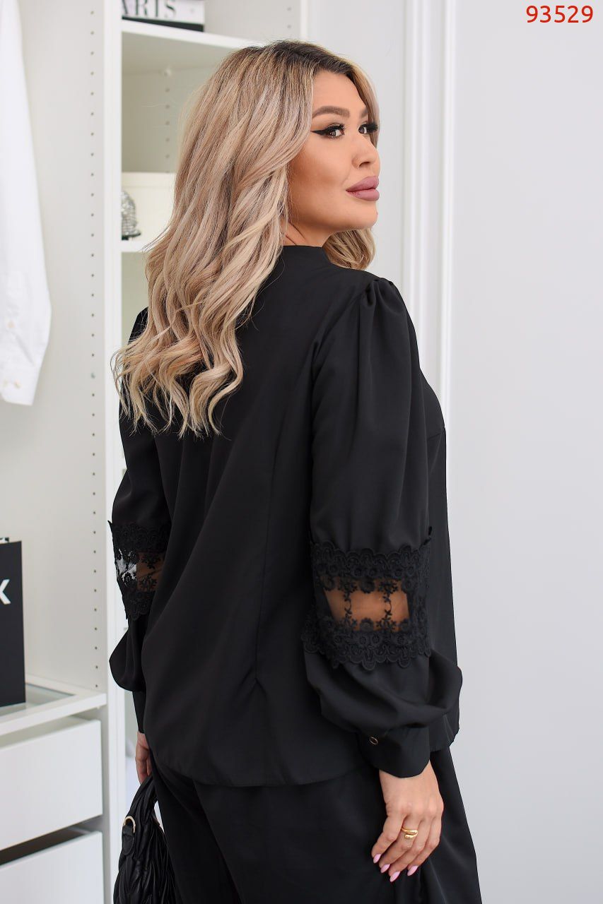 Блуза з ніжним мереживом – ідеальний вибір для створення елегантного образу. Легка тканина ідеально сідає на фігуру, додаючи вашому стилю вишуканості.