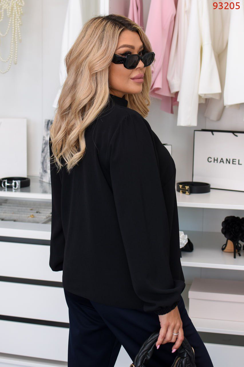 Блуза з вишуканим V-подібним вирізом горловини, що додає образу жіночності та легкості. На рукавах в кінці еластична резинка для зручності та неповторного стилю.