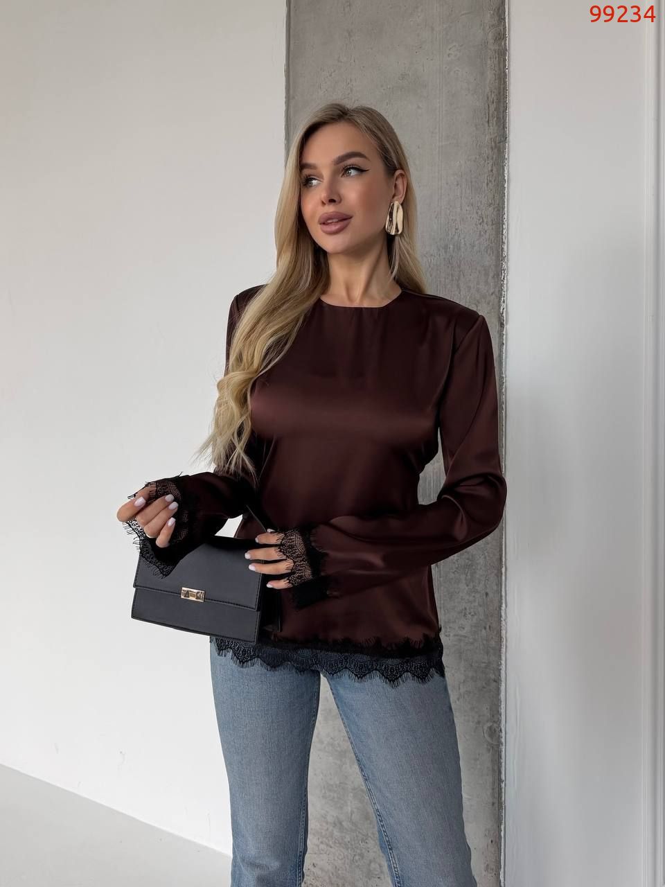 Блуза з шовку шоколад №99234