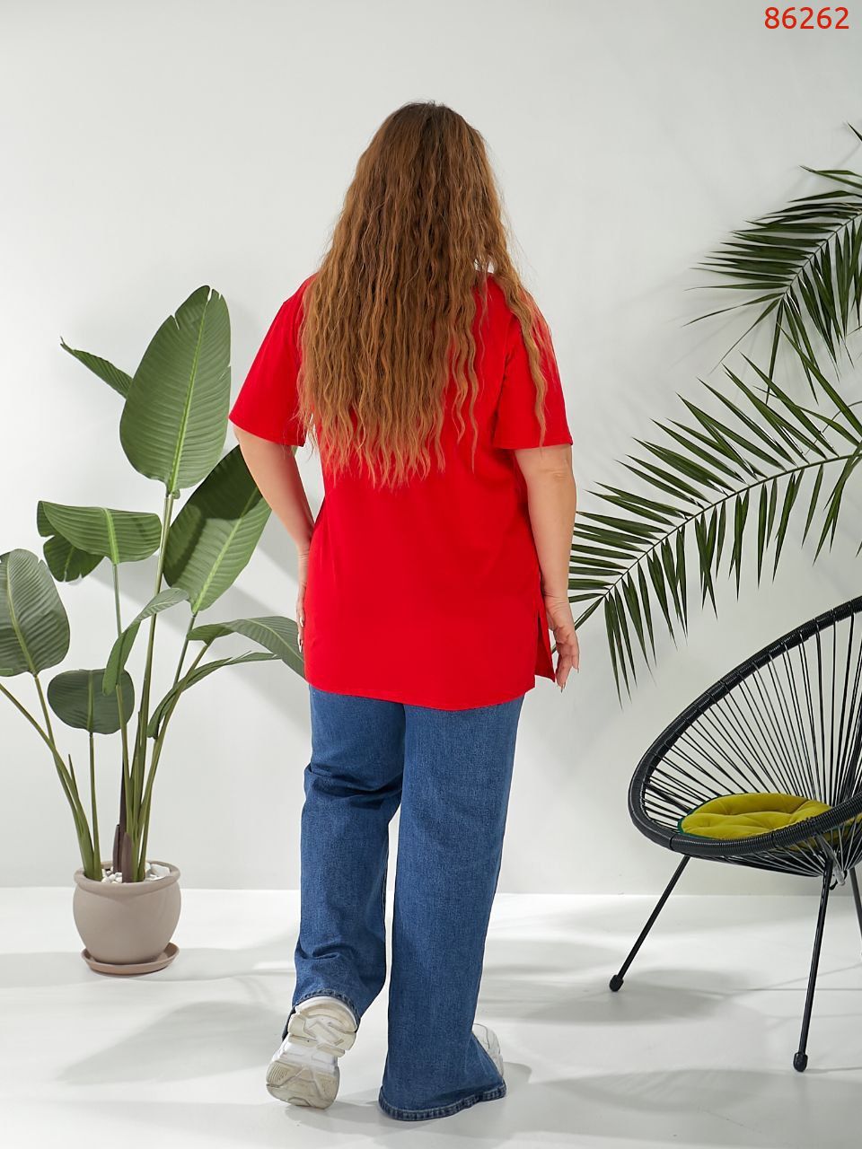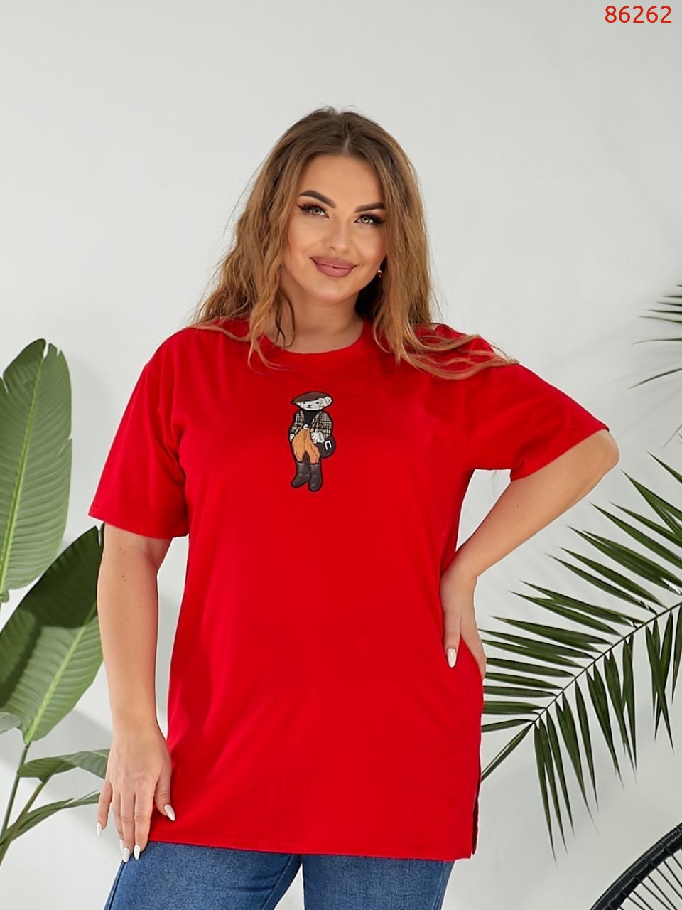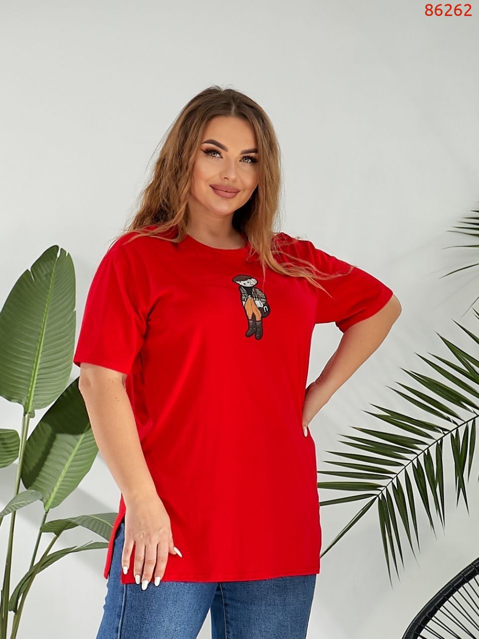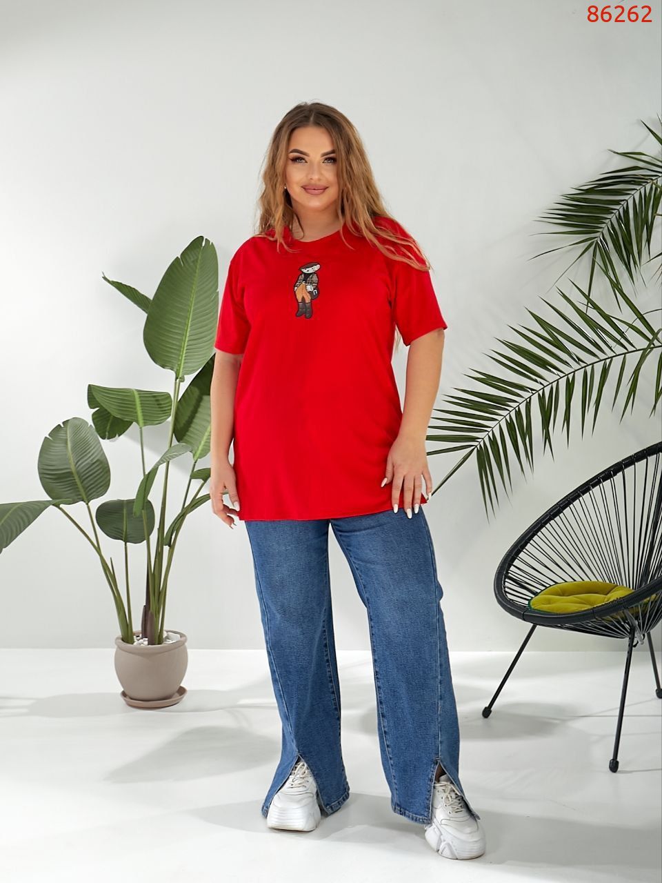 ФутболкаДовжина виробу 69/70/71ОГ 118/126/134Виміри зроблені поверх виробуФутболка носиться вільноНа модели розмір 4850