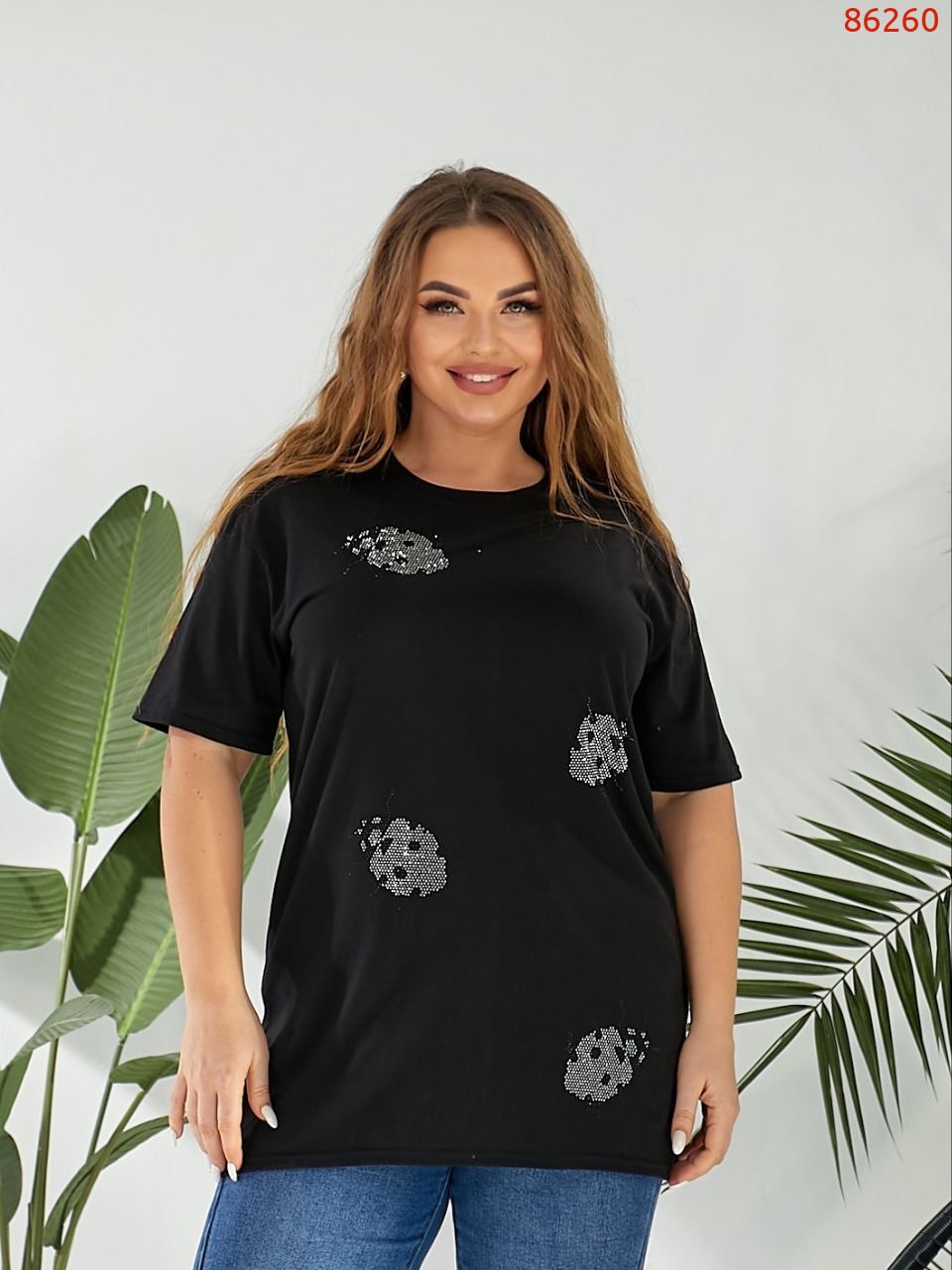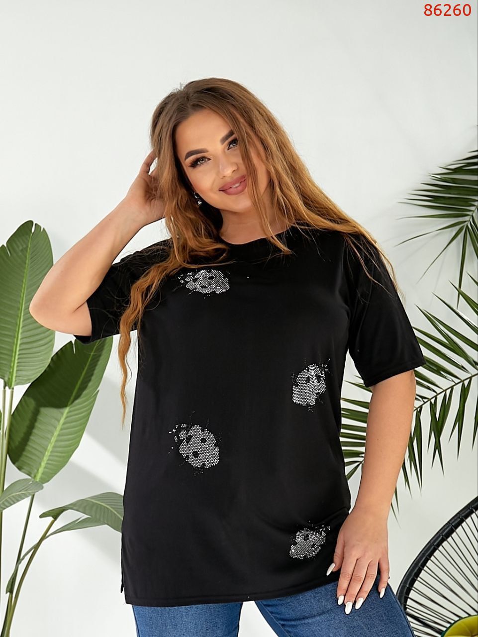 ФутболкаДовжина виробу 69/70/71ОГ 118/126/134Виміри зроблені поверх виробуФутболка носиться вільноНа модели розмір 4850