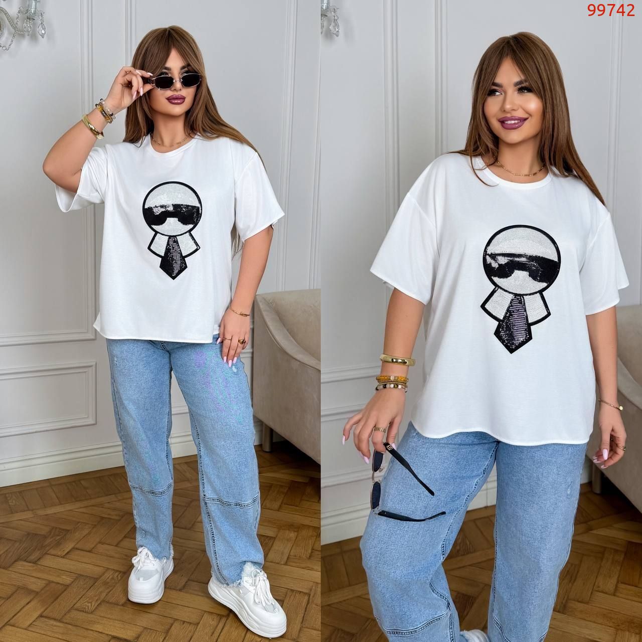 Футболка вільно покрою з спущеним рукавом , якісна нашивка .