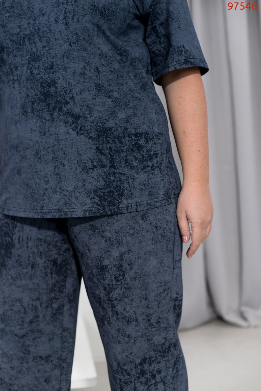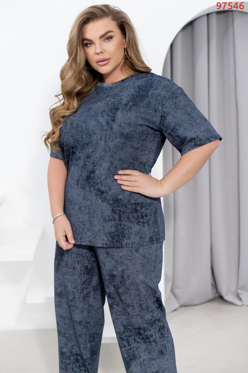 Цей костюм – ваш новий must-have для стильного, але комфортного образу! Футболка вільного крою з класичною круглою горловиною і коротким рукавом з опущеною лінією плеча – це не тільки про стиль, але й про максимальний комфорт. Ідеальний вибір для легких і невимушених образів, коли хочеться виглядати ефектно без зайвих зусиль. Штани прямого крою з гумкою на талії і зручними бічними кишеньками додають практичності та свободи рухів. Цей костюм чудово підходить для будь-якої ситуації – від прогулянок до відпочинку вдома чи зустрічей з друзями.