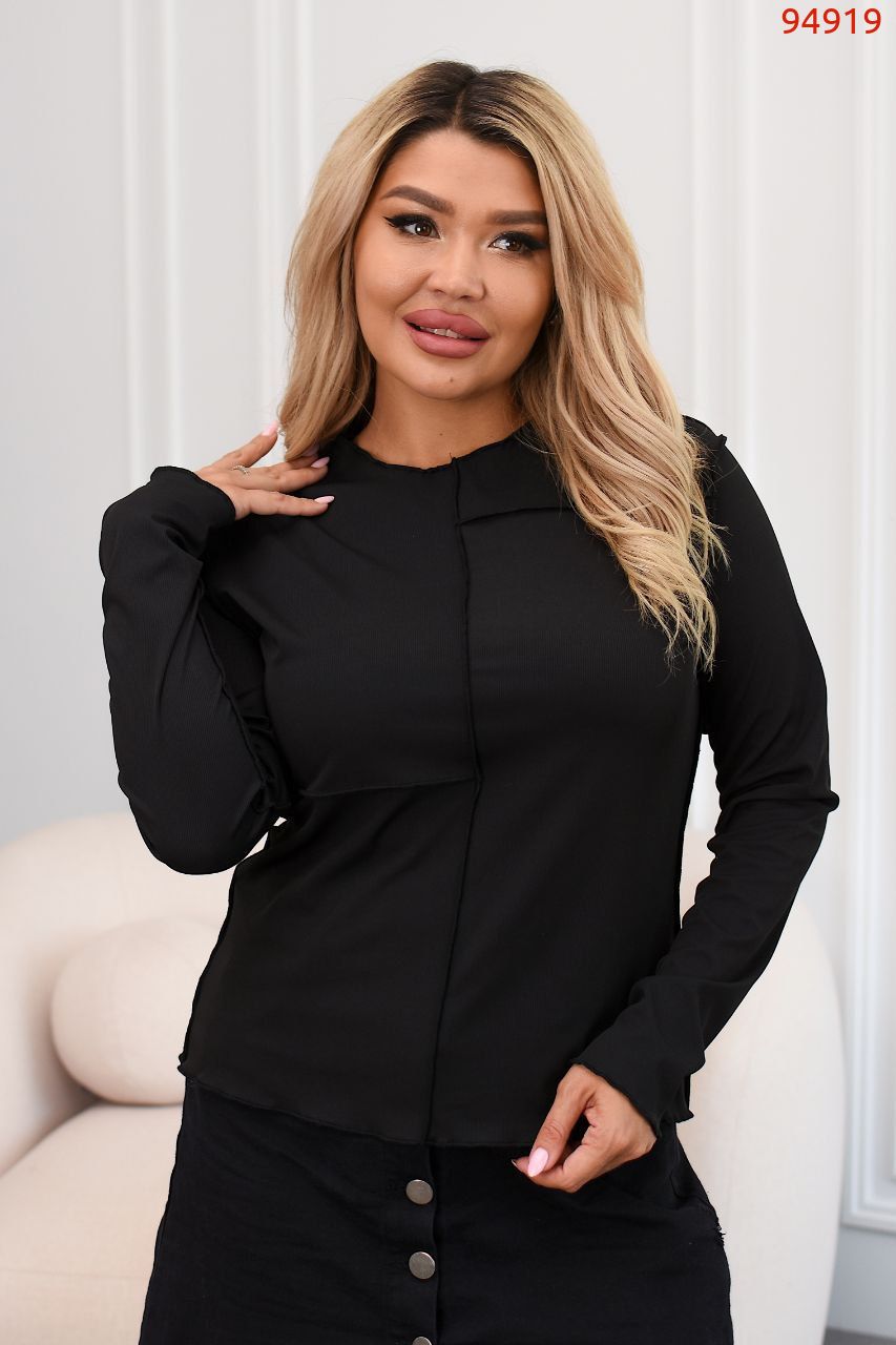 Жіночий лонгслів. Лонг з довгим рукавом, ассеметричний, ефект необроблених країв та швів назовні.