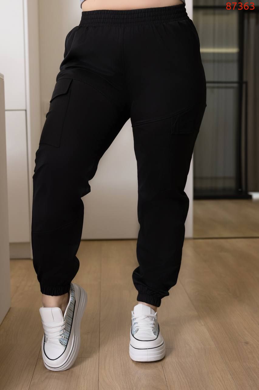Джогери на гумці з накладними карманами з клапанами по боковому шву теж кишені.