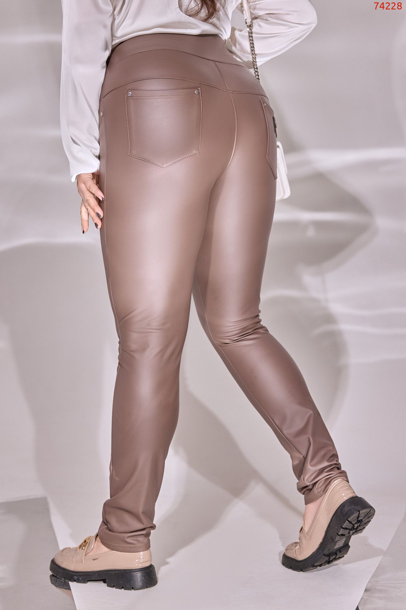 Лосини брючного крою з еко шкіри гарної якості, з кишенями ззаду, на тонкому флісі, приємні до тіла, пояс 10см утяжка