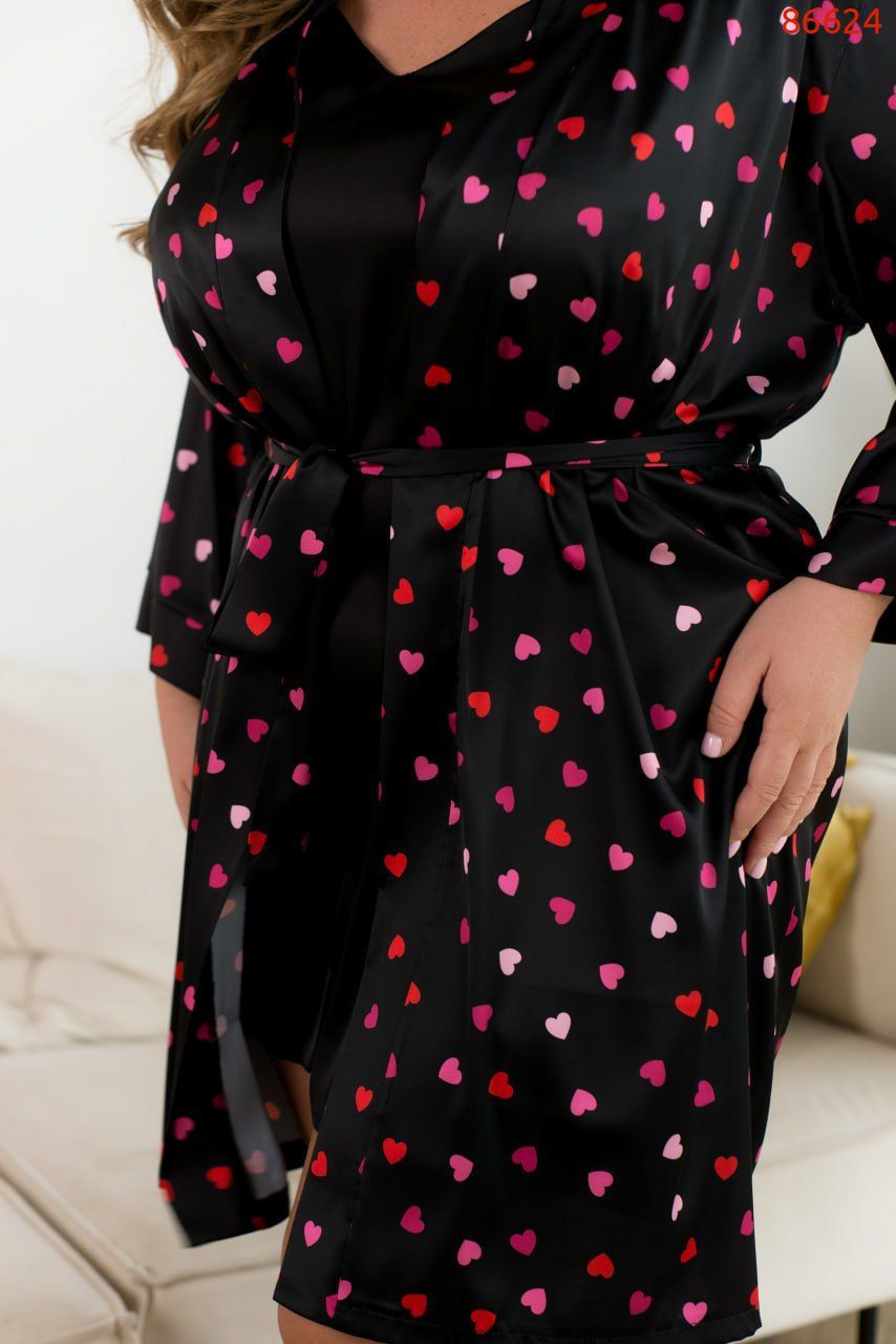 Розкішний домашній комплект із шовку Армані – втілення ніжності, комфорту та елегантності. Нічна сорочка має витончений крій, що делікатно підкреслює силует. Тонкі бретельки з регулюванням дозволяють ідеально підігнати довжину, а виточки на грудях забезпечують хорошу посадку і надають витонченості. Халат вільного крою гарно лягає на фігуру, створюючи відчуття легкості. Занижена лінія плеча надає образу ніжності, а довгі рукави з манжетами надають елегантного акценту. Пояс у тон і шльовки з боків дозволяють зручно зафіксувати халат. Шовк Армані - це розкішна тканина, яка має благородний блиск, приємна на дотик і добре пропускає повітря. Цей комплект створений для тих, хто вибирає вишуканий стиль, комфорт та ідеальну якість.