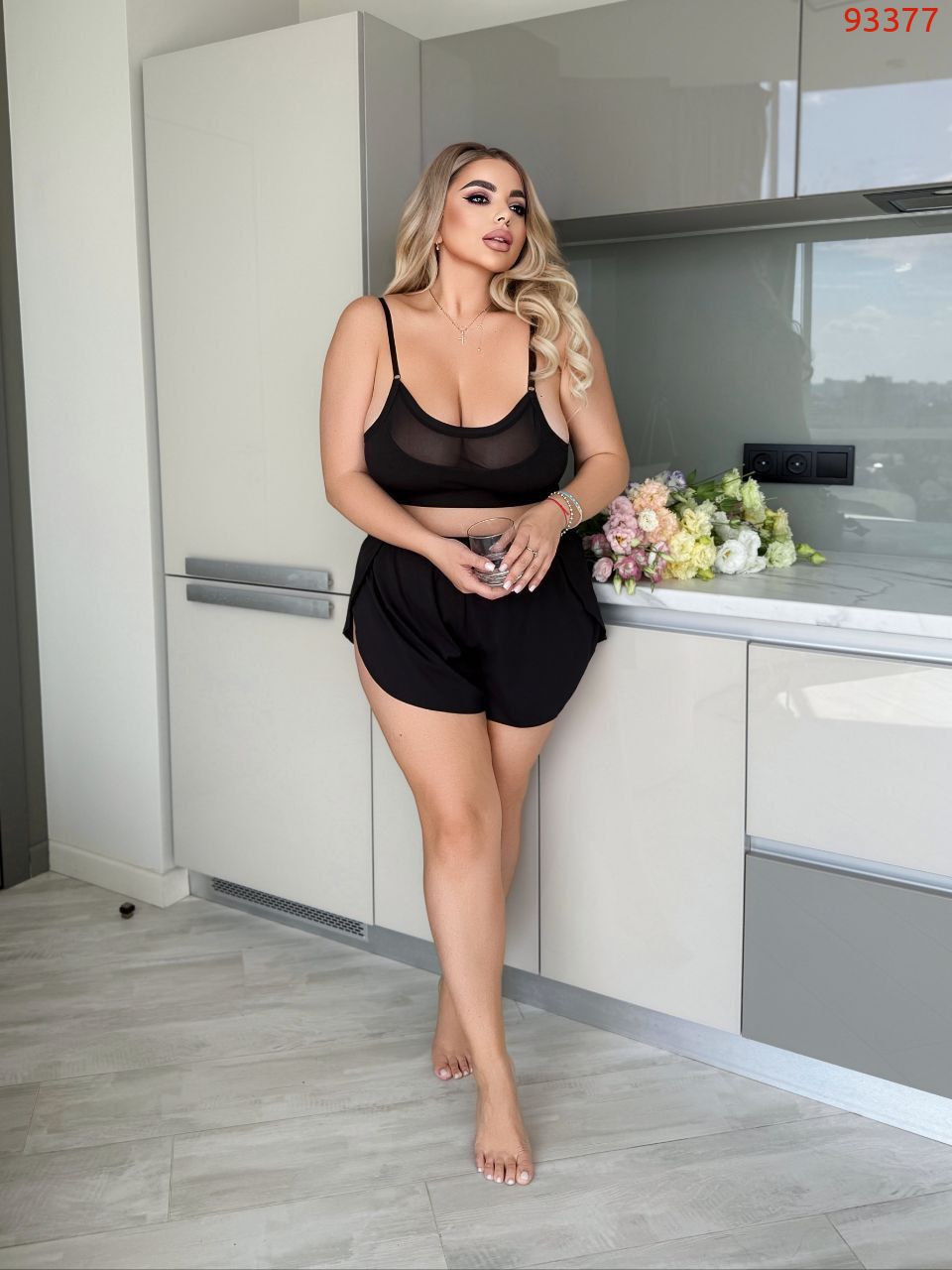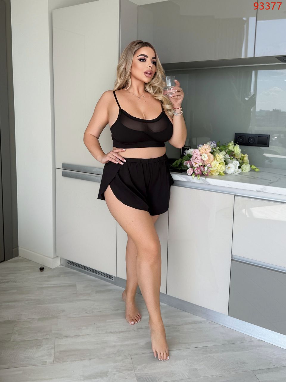 Набір. Топ +шорти+стрінги. Топ зі вставками сітки, під грудьми щільна гумка. Шорти, вільні з розрізами з боків, на поясі гумка, Стрінги Бразилії на щільній гумці, зі вставками сітки