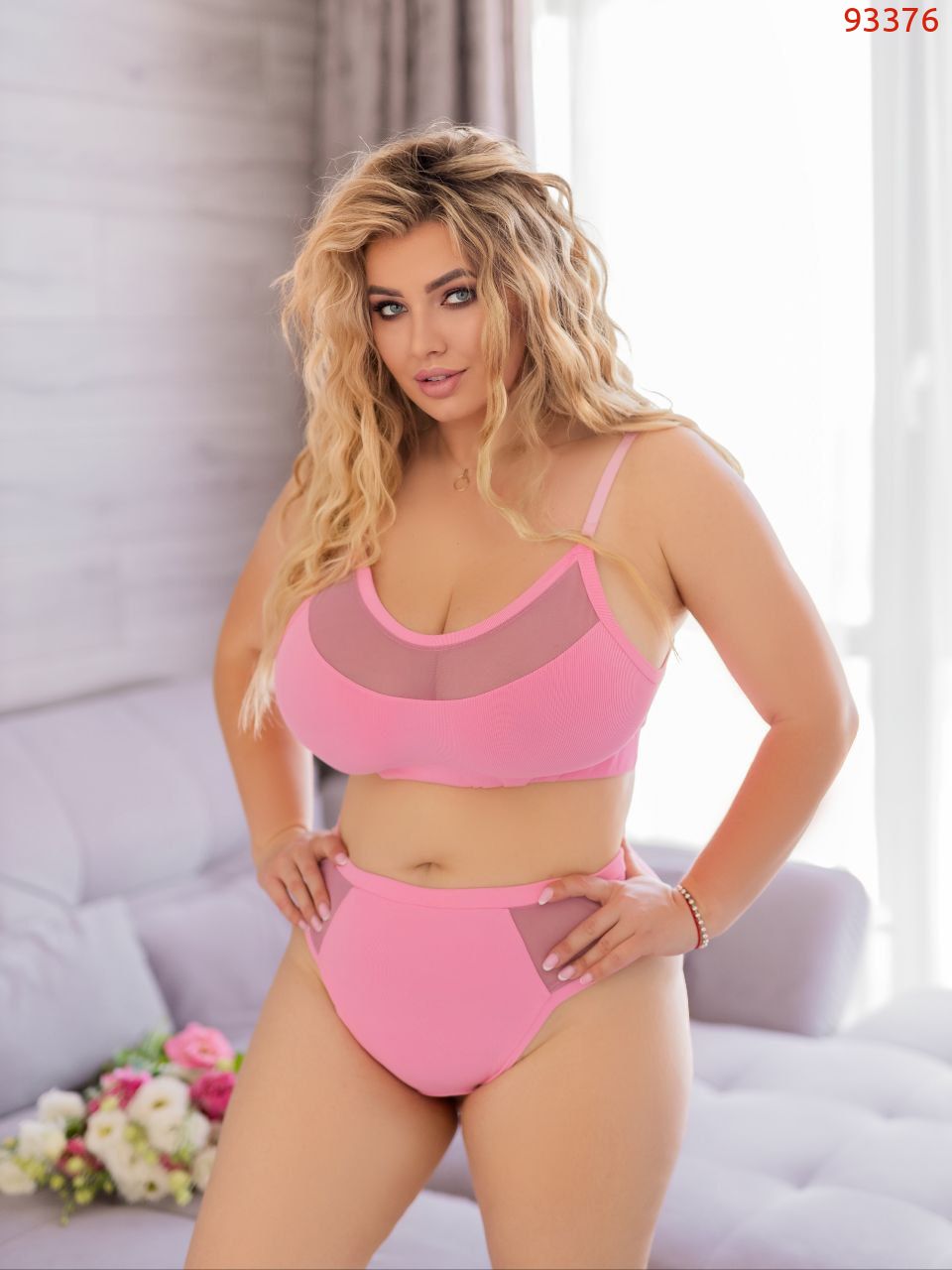 58-60 Об'єм грудей - 114 см, Об'єм талії (довжина гумки) - 96см, Об'єм стегон - 136 см, Висота шорт - 35 см, Висота ТОПу - 35 см, Об'єм гумки під грудьми - 100 см