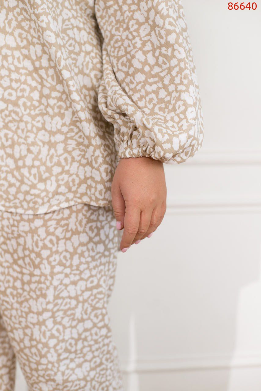 Домашній костюм із мусліну – ідеальне поєднання ніжності, свободи та елегантності. Сорочка – легка та повітряна, з коміром-стійкою та акуратною нагрудною кишенею. Вона має подовжену спинку та коротший перед, що додає силуету елегантності та легкості. Довгі вільні рукави на гумці забезпечують затишок і комфорт. Штани – комфортні та стильні, з вільним кроєм, гумкою на талії та зручними бічними кишенями. Муслін – це натуральна, м’яка тканина, що дозволяє шкірі дихати, даруючи комфорт у будь-яку пору року. Цей костюм – ідеальний варіант для тих, хто цінує легкість, свободу рухів і природну елегантність.
