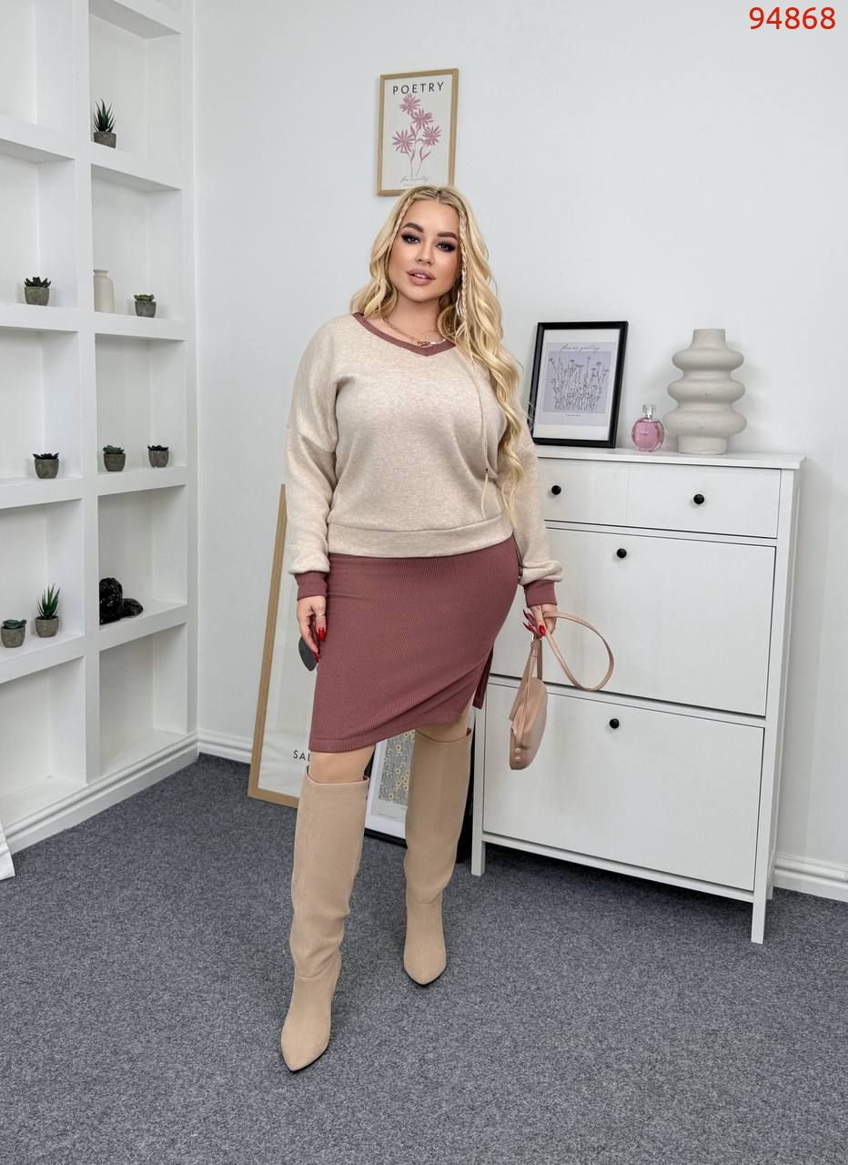 Теплий комплект двійка з м'якої та приємної до тіла тканини (плаття - рубчик з начосом + кофта з м'якої ангори дабл.Готовий, чудовий образ на кожен день