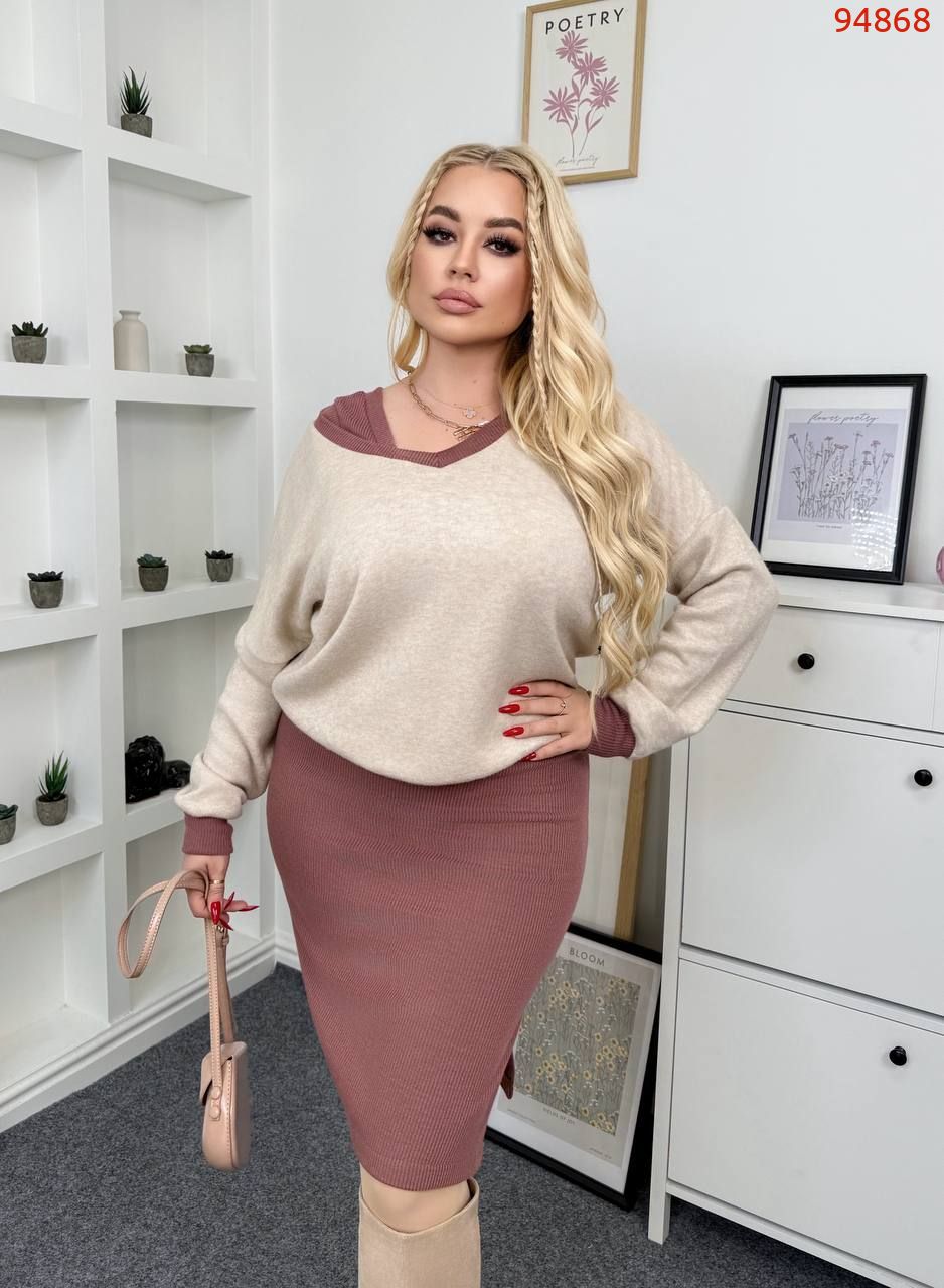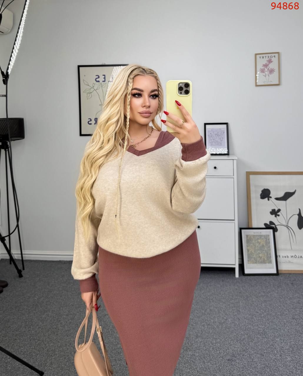 Матеріал: плаття - Турецький рубчик з начосом, кофта - двостороння ангора