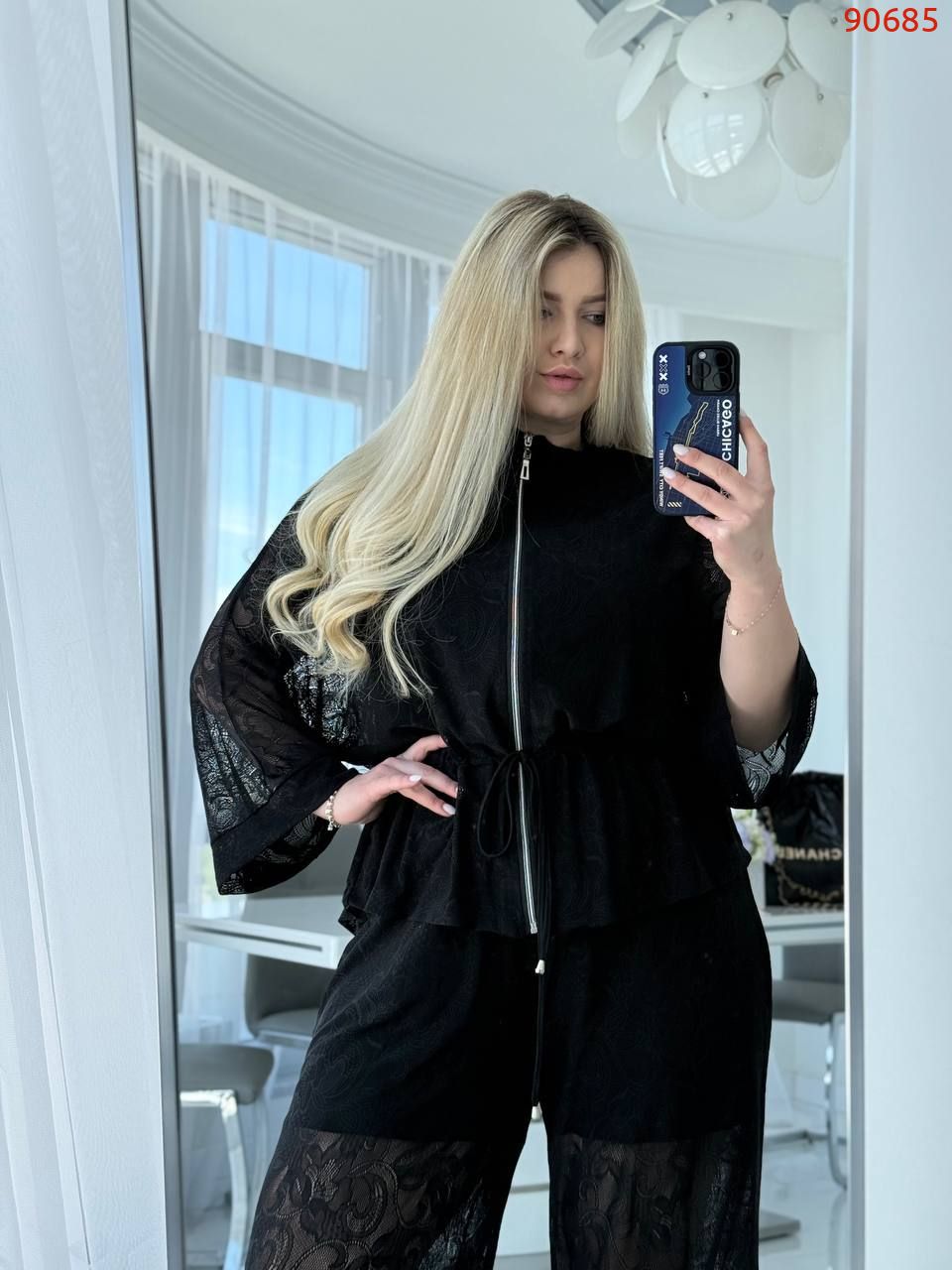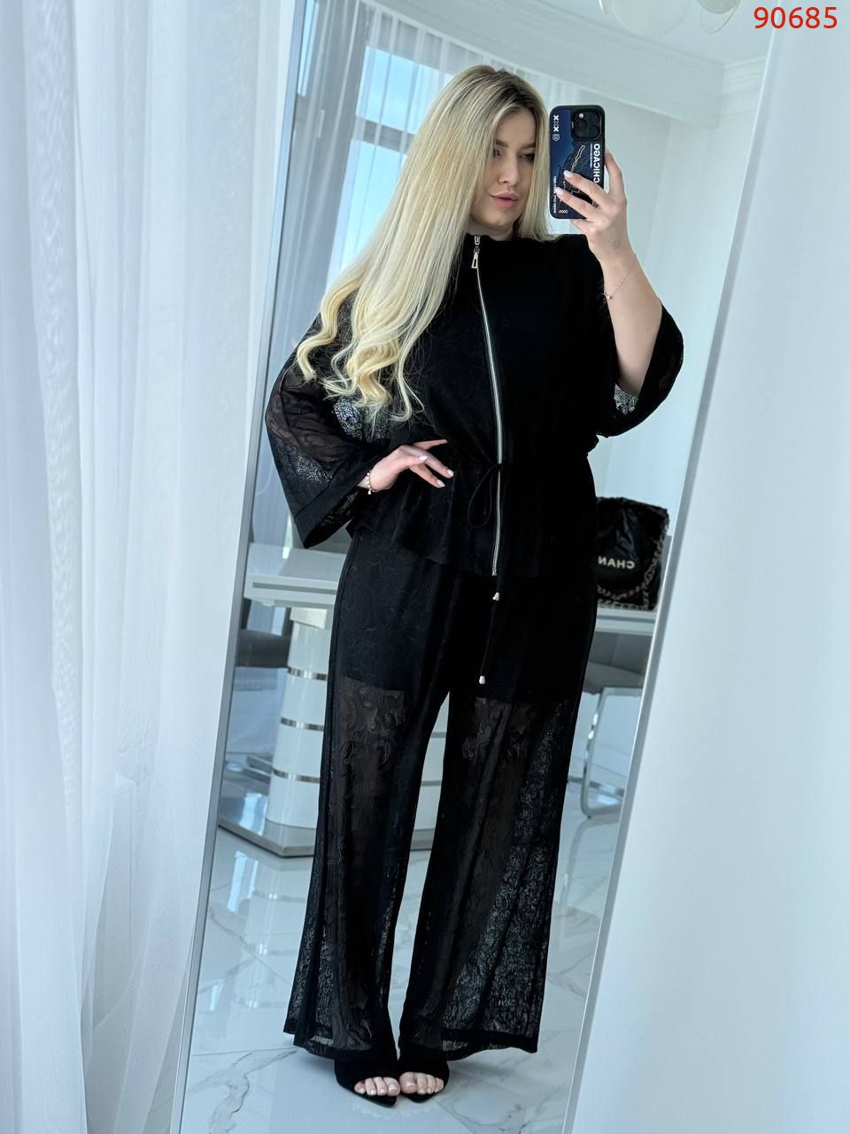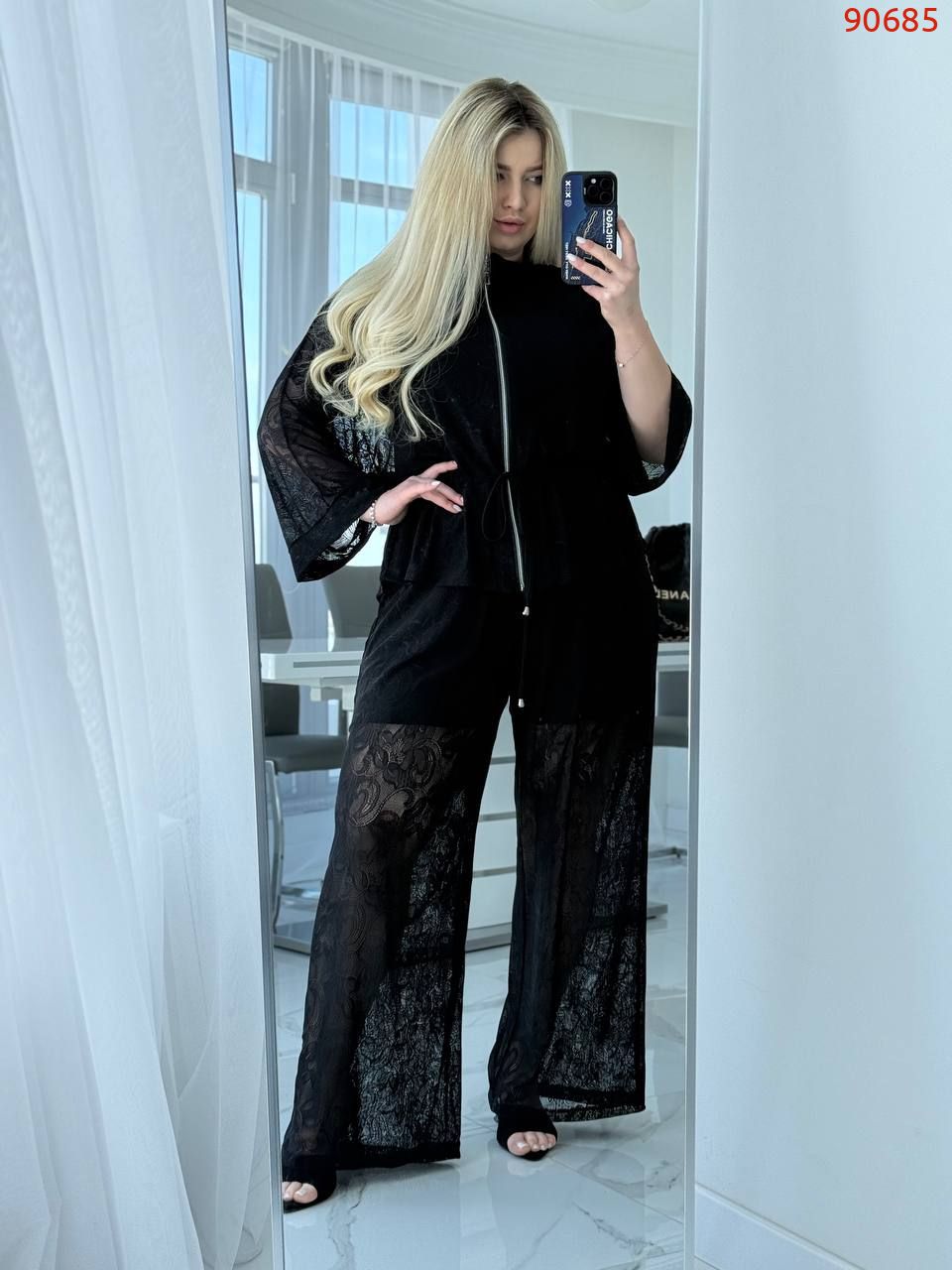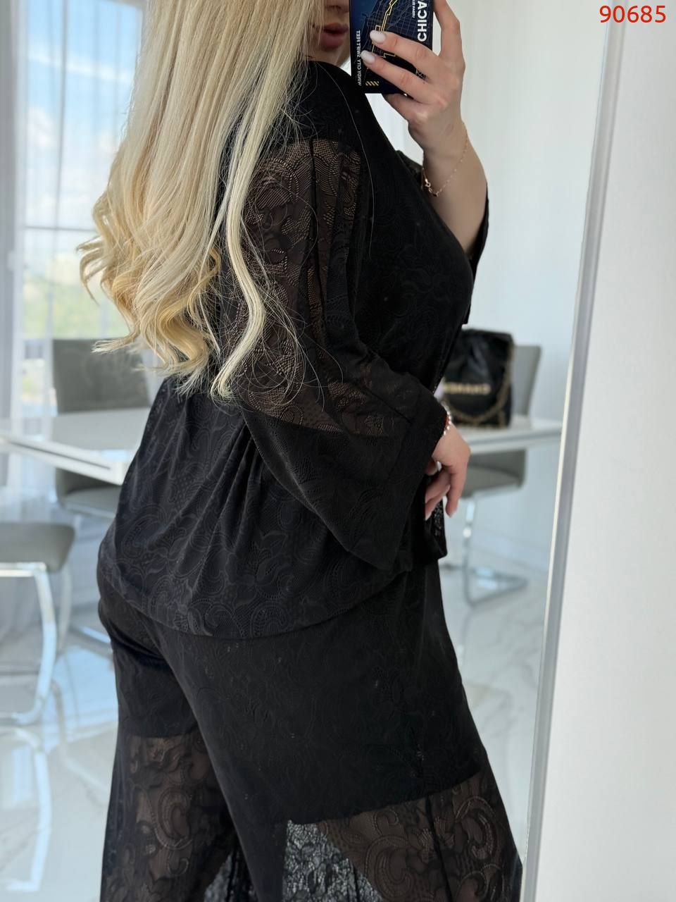 Кімоно гюпюр + футболка з мікро дайвінгу + брюки гіпюр і пришиті знизу шорти з мікро дайвінгу.