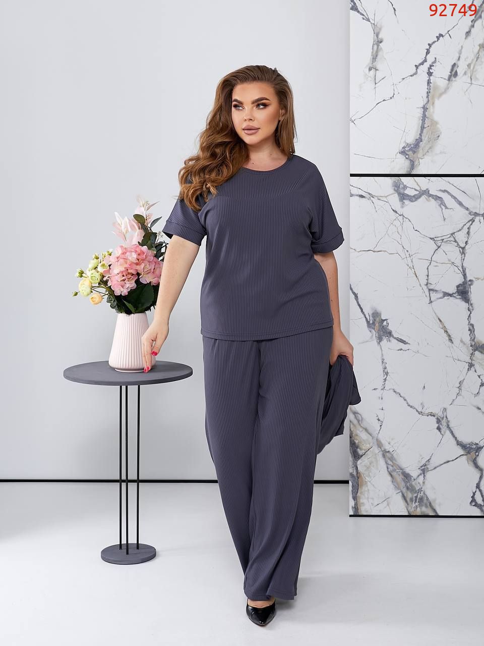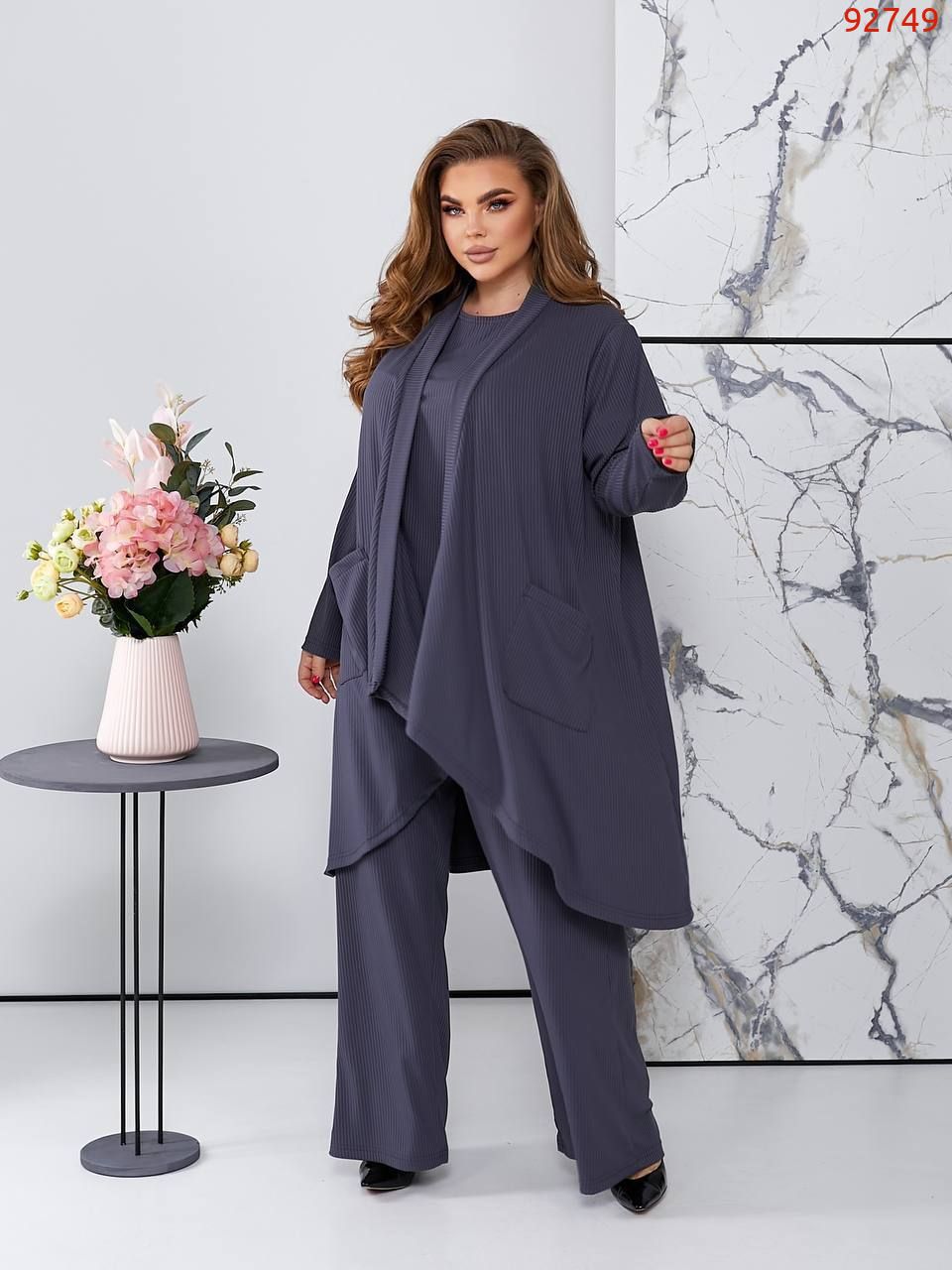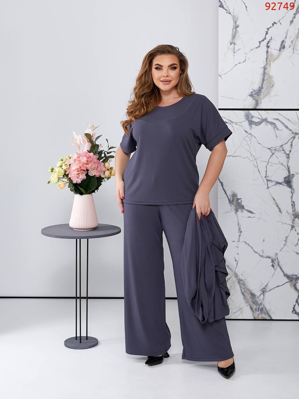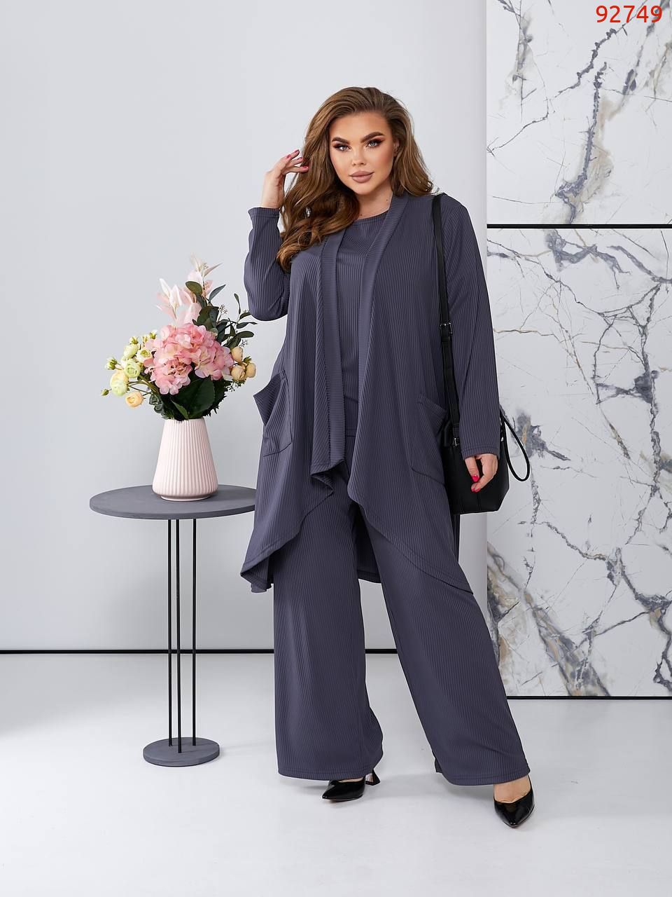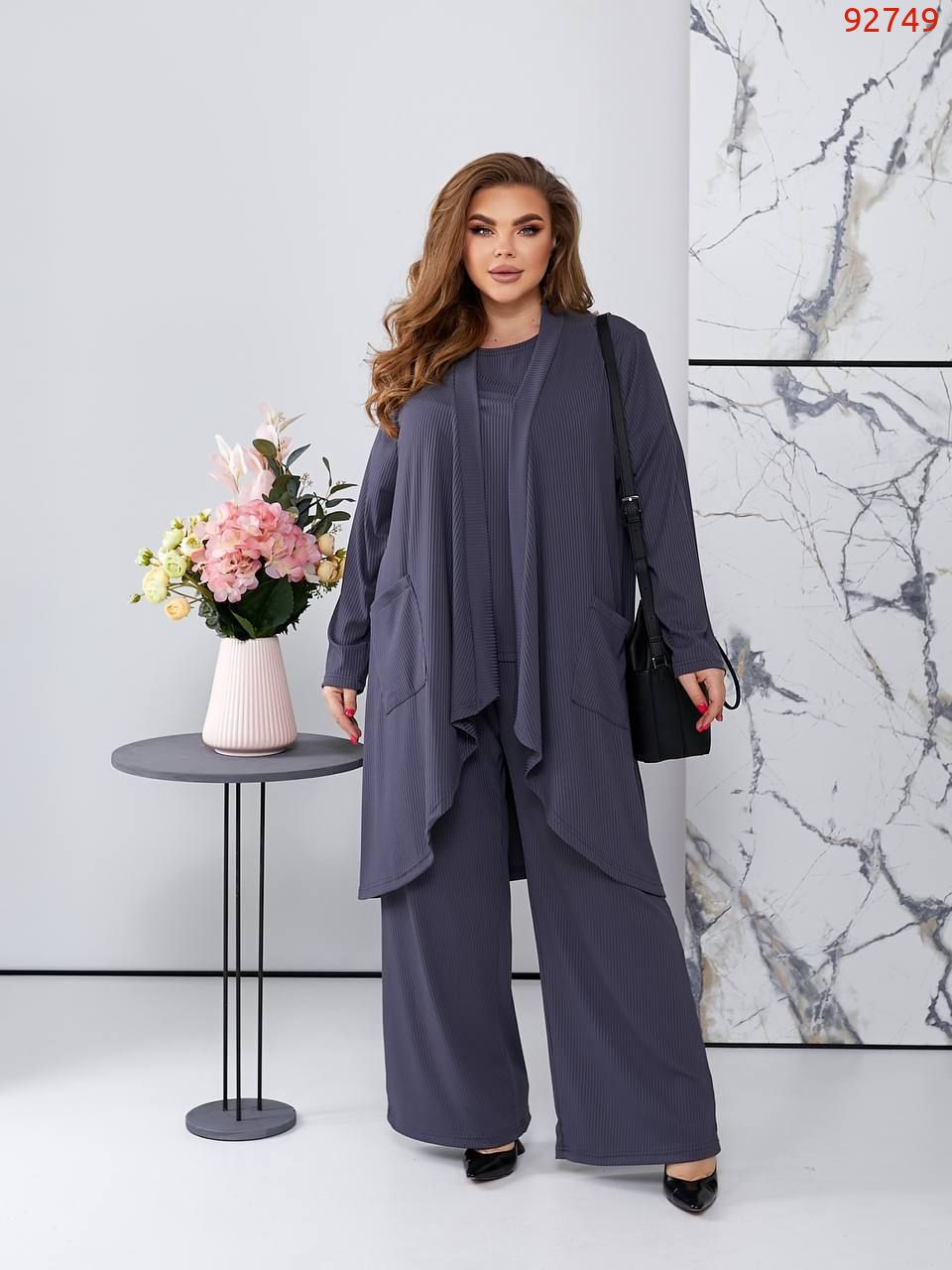 Стильний костюм підійде як на вихід, так і на кожен день. У костюм входить: футболка, штани та кардиган. Штани вільного крою з високою посадкою, кардиган не застібається.