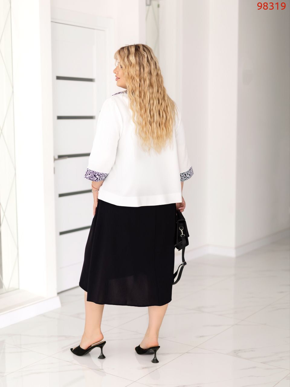 Піджак прикрашений з гарним принтованим коміром та манжетом. по рукаві . В ньому можно піти на вечірку,