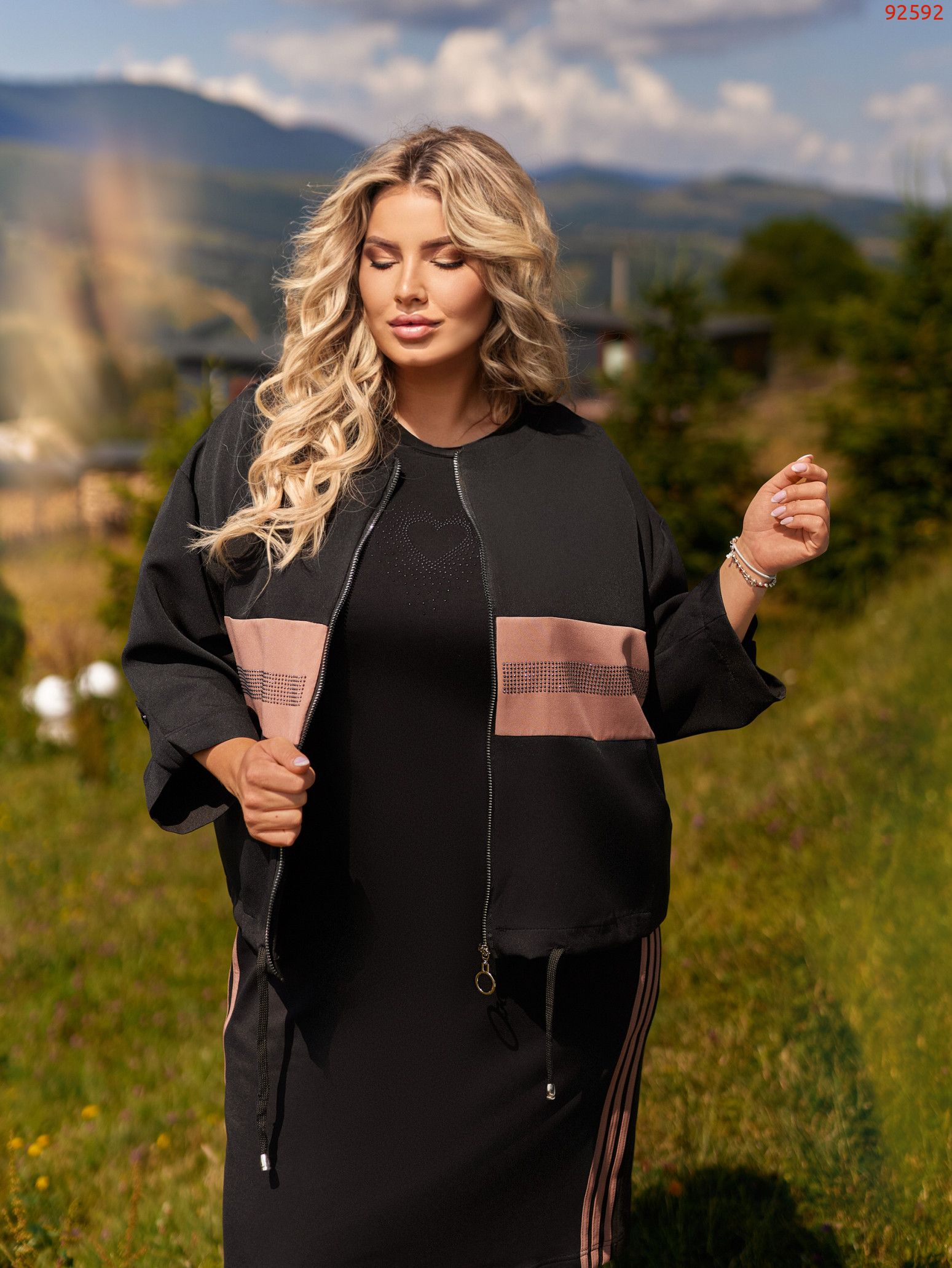 ▪︎ Спереду оздоблена композицією з камінців у формі сердечка, а з боків — яскравими лампасами які компонують з бомбером.
