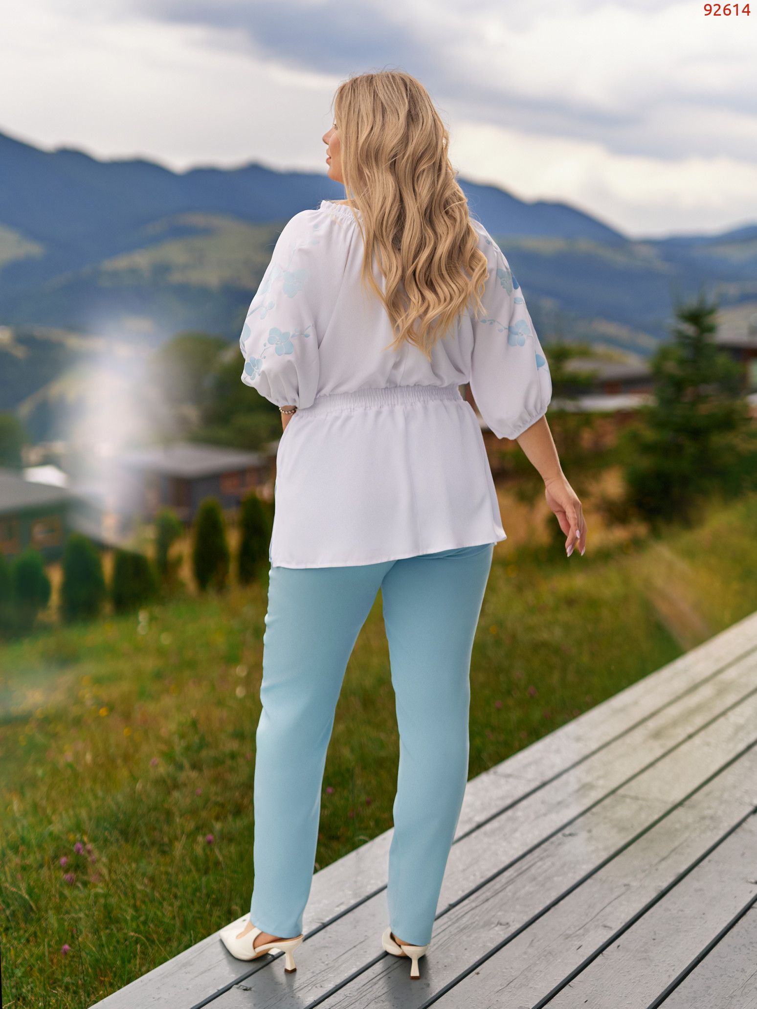 ▪︎ На горловині, рукавах та талії – м’яка резинка, що формує жіночний силует.