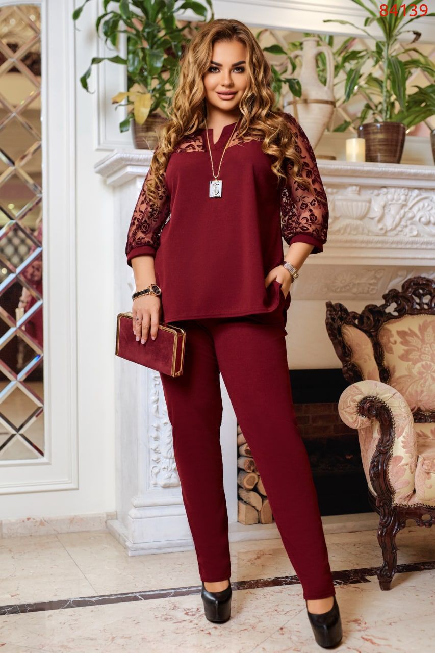 Нарядний жіночий комплект виглядає елегантно, завдяки лаконічному крою і ненав'язливому декору. Блуза напівприлеглого силуету, від лінії талії до низу розширена, з приємної на дотик і досить еластичній тканині. У цьому наряді ви неодмінно зберете захоплені погляди і будете зіркою на будь-якій урочистості.