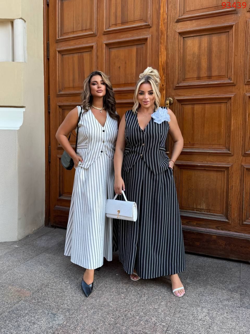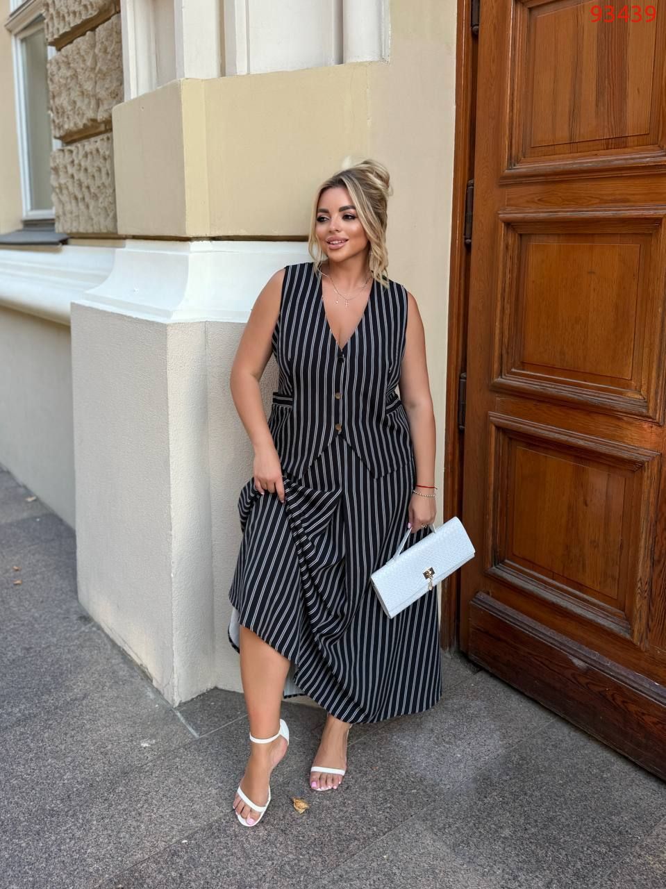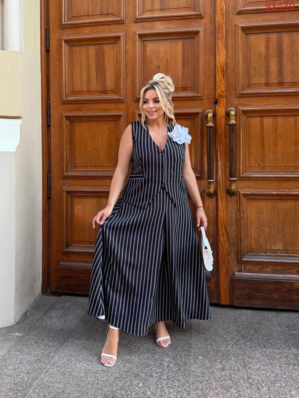 Елегантний та комфортний варіант для сучасної жінки! Костюм із креп-костюмки з ефектним принтом у вертикальну смужку візуально витягує силует та додає стрункості. М’яка тканина креп костюмка приємна до тіла, тримає форму та легко поєднується з аксесуарами.