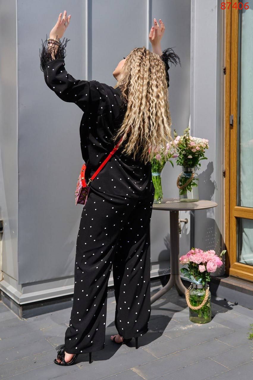 Довжина блузи по переду -78 см. Застібки - ґудзики . По бокам розрізи. Можно носити в оверсайзному стилі або зв’язати попереду. Пір‘я відстібттся (на ліпучкі).