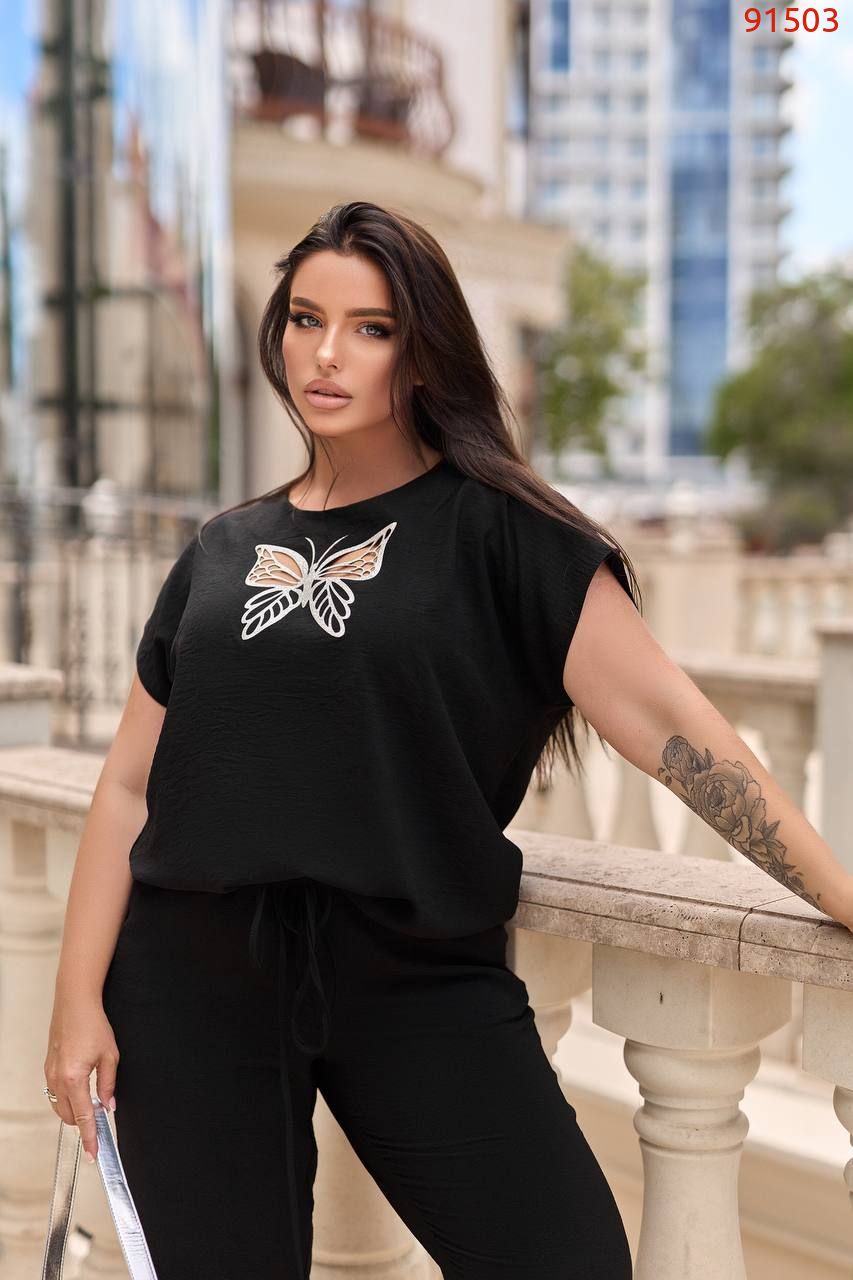 Блуза вільного крою з лазерною накаткою на грудях, знизу на куліскі