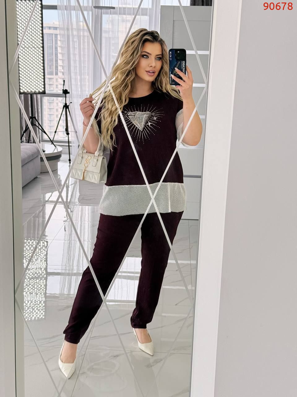 Найкращі друзі дівчат – це, звісно, діаманти. І цей костюм створений саме для того, щоб ти сяяла! Блуза вільного крою зі спущеним плечем виглядає по-особливому стильно. Трендовий принт із камінчиками додає блиску, а декоративна сітка на рукавах і по низу – це про модні деталі, які роблять образ унікальним. Штани-бананчики зручні, як улюблені домашні, але виглядають мегастильно! Вони звужуються донизу, м’яко сідають завдяки круговій резинці на поясі, а ще мають кишені – зручно і практично. Вишукано, яскраво, комфортно й розкішно – усе, що треба для твоєї нової улюбленої речі Сяй яскраво, як діамант!