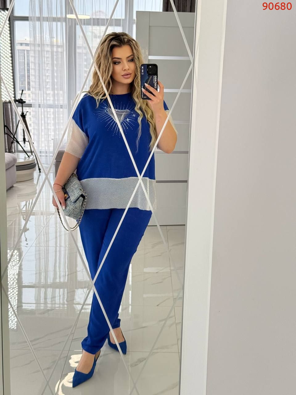Найкращі друзі дівчат – це, звісно, діаманти. І цей костюм створений саме для того, щоб ти сяяла! Блуза вільного крою зі спущеним плечем виглядає по-особливому стильно. Трендовий принт із камінчиками додає блиску, а декоративна сітка на рукавах і по низу – це про модні деталі, які роблять образ унікальним. Штани-бананчики зручні, як улюблені домашні, але виглядають мегастильно! Вони звужуються донизу, м’яко сідають завдяки круговій резинці на поясі, а ще мають кишені – зручно і практично. Вишукано, яскраво, комфортно й розкішно – усе, що треба для твоєї нової улюбленої речі Сяй яскраво, як діамант!