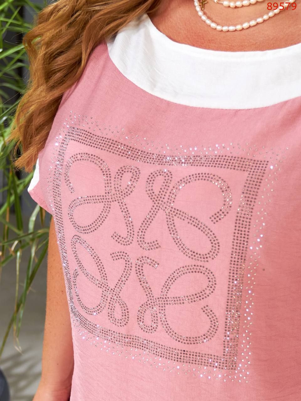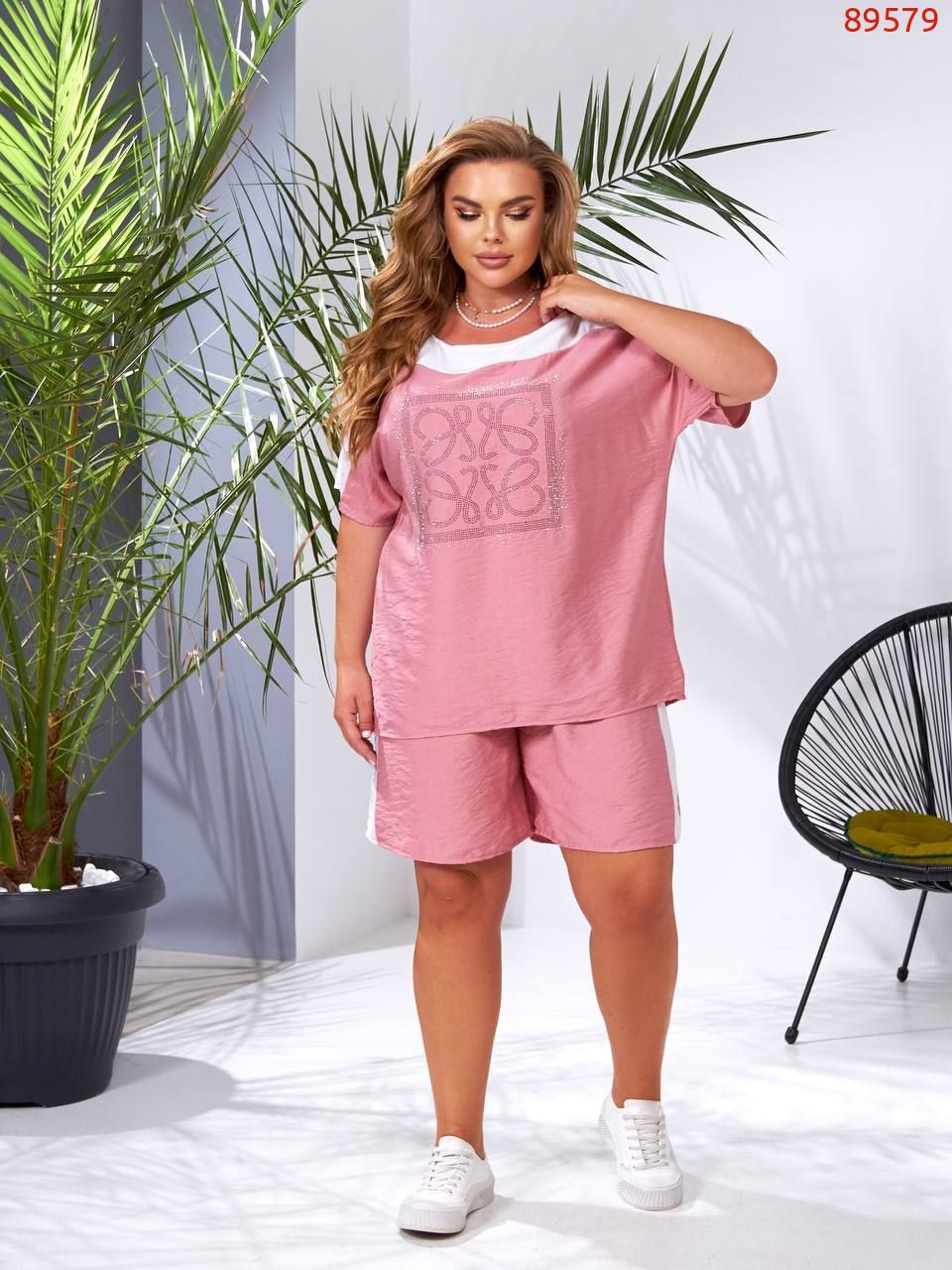 Легкий та яскравий прогулянковий костюм із шортами. Футболка вільного крою, декорована камінням. Шорти вільного крою з високою посадкою, кишені.