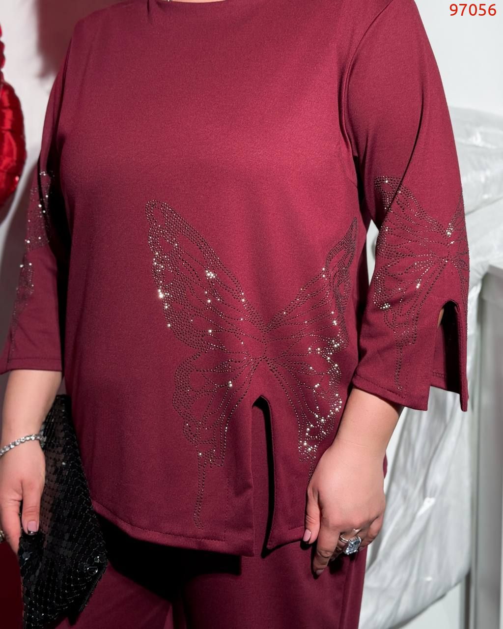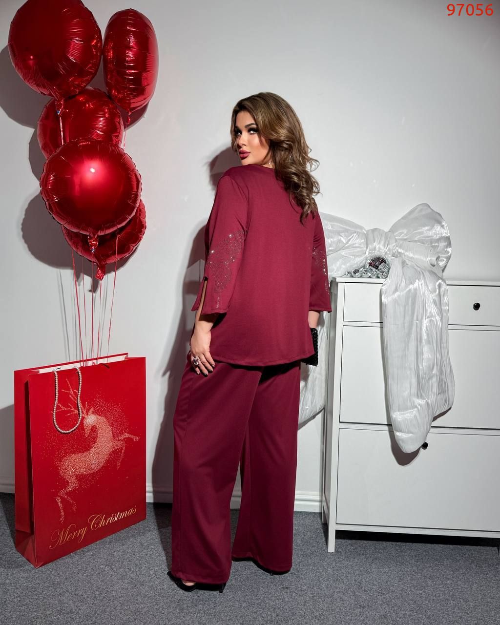 Цей вишуканий брючний костюм, що складається з туніки та штанів палаццо, створений для того, щоб підкреслити вашу жіночність та почуття стилю! Костюм чудово підходить як для урочистих заходів , так і для створення ефектного повсякденного або офісного образу