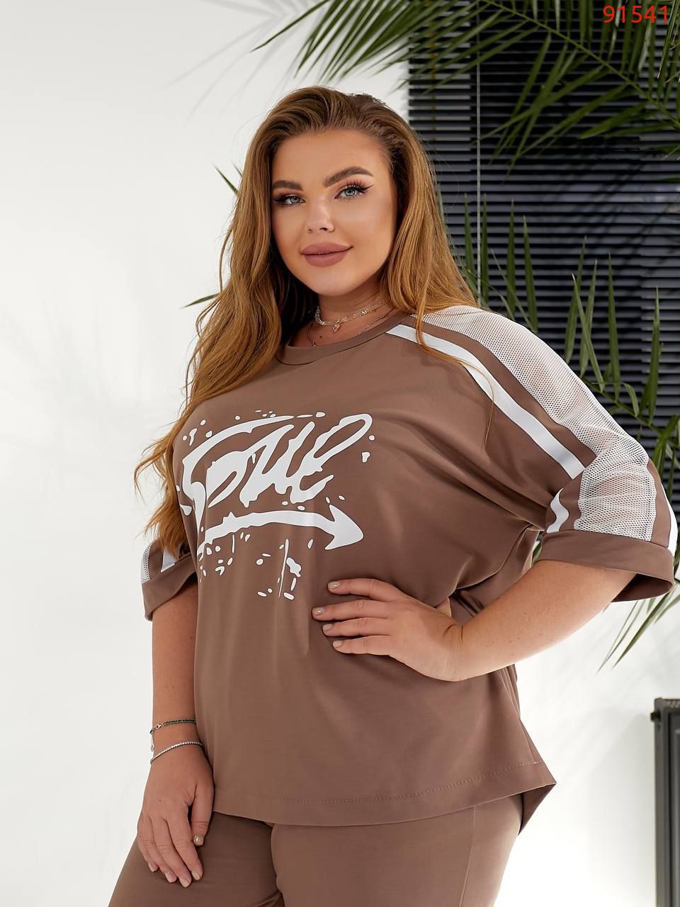 Футболка вільного крою декорована накатом і сіткою