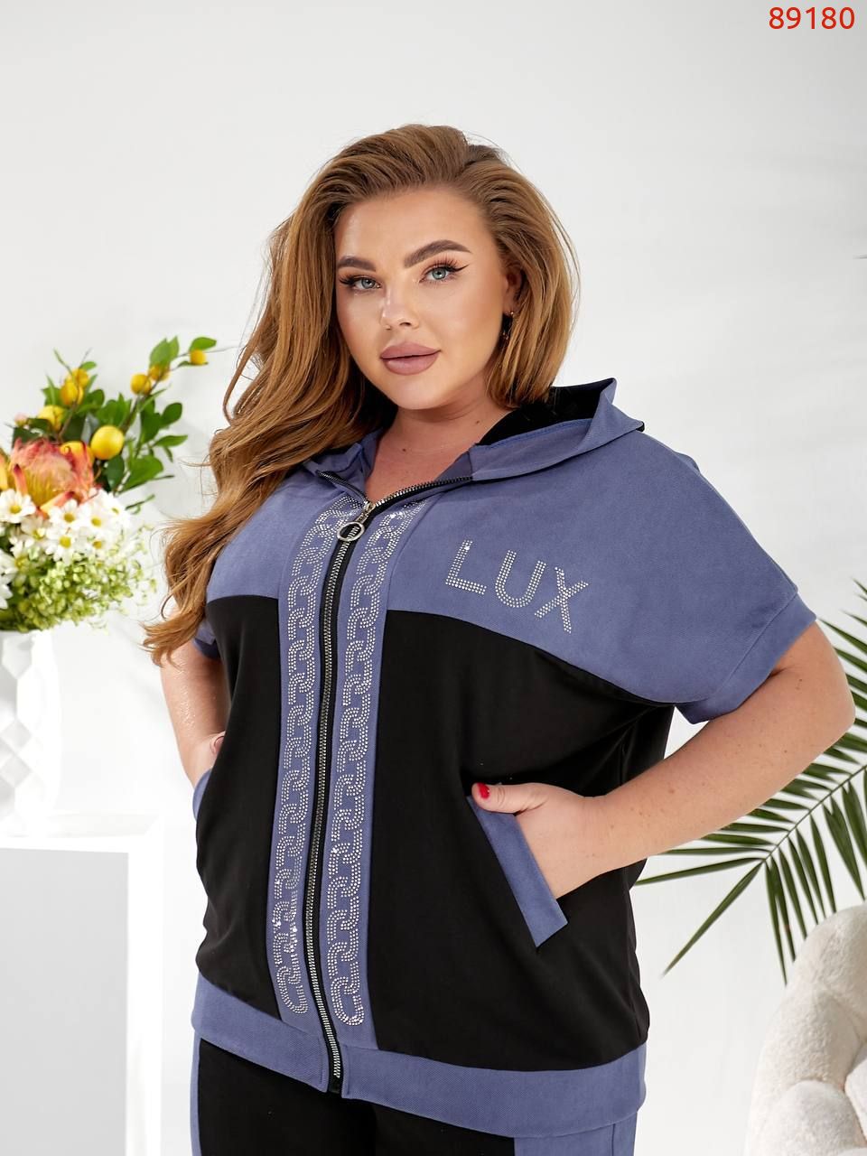 Кофта на змійці вільного крою, декорована стразами, зручний глибокий капюшон, кишені.