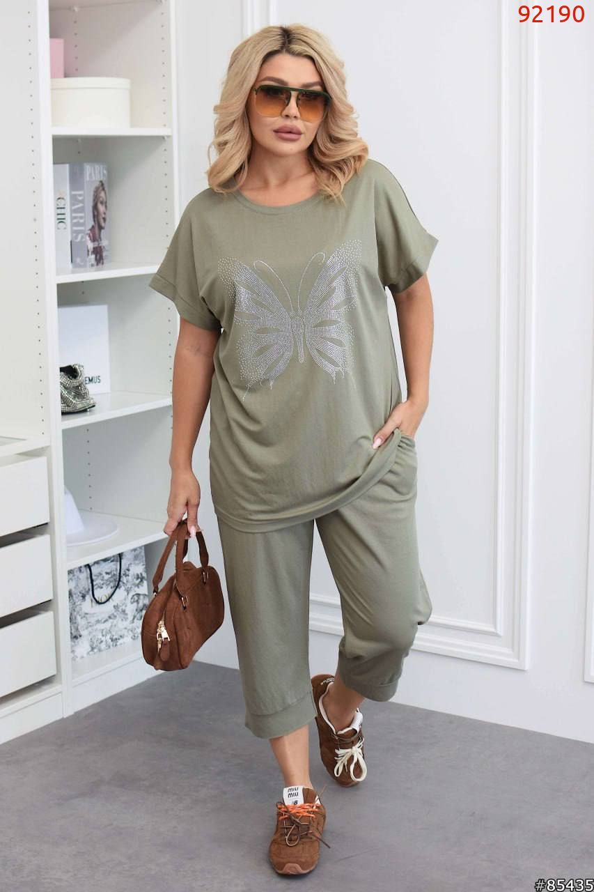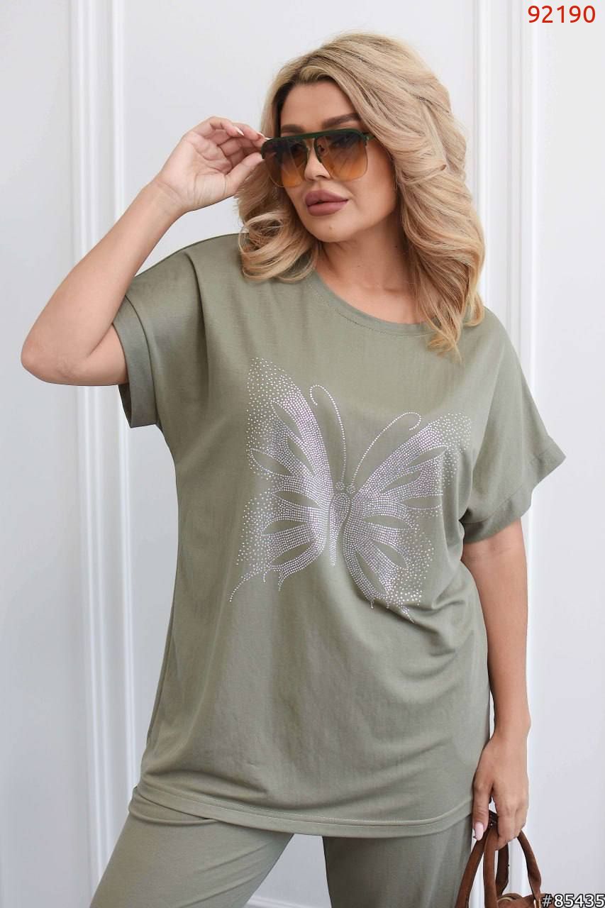 Жіночий костюм двійка з якісним накатом -бабочка камушки.Камушки дуже доброї якості не від клеються.