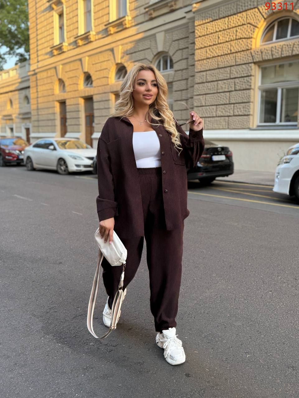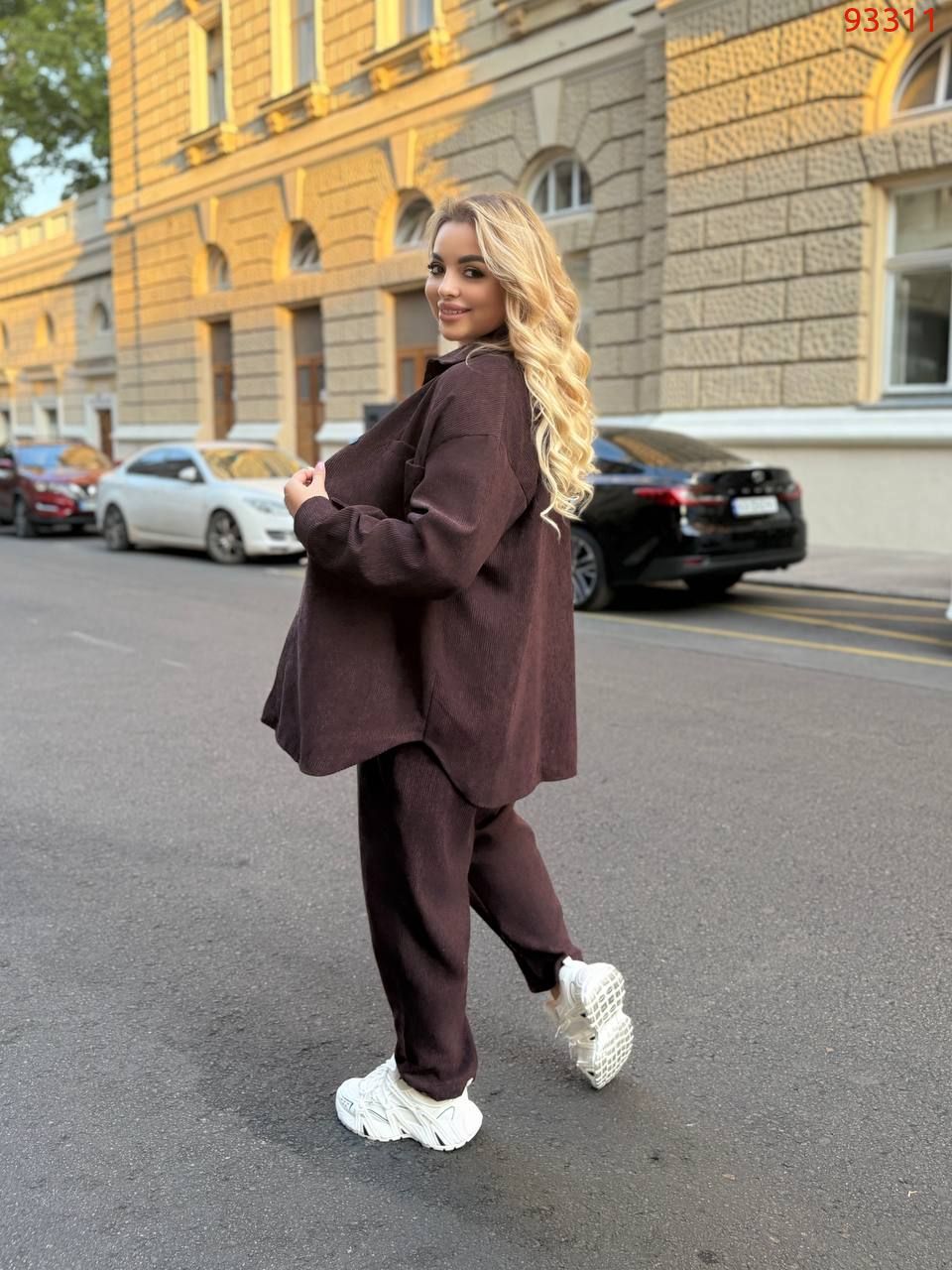 Трендовий костюм двійка-оверсайз.Сорочка вільного крою та Моми з високою посадкою.