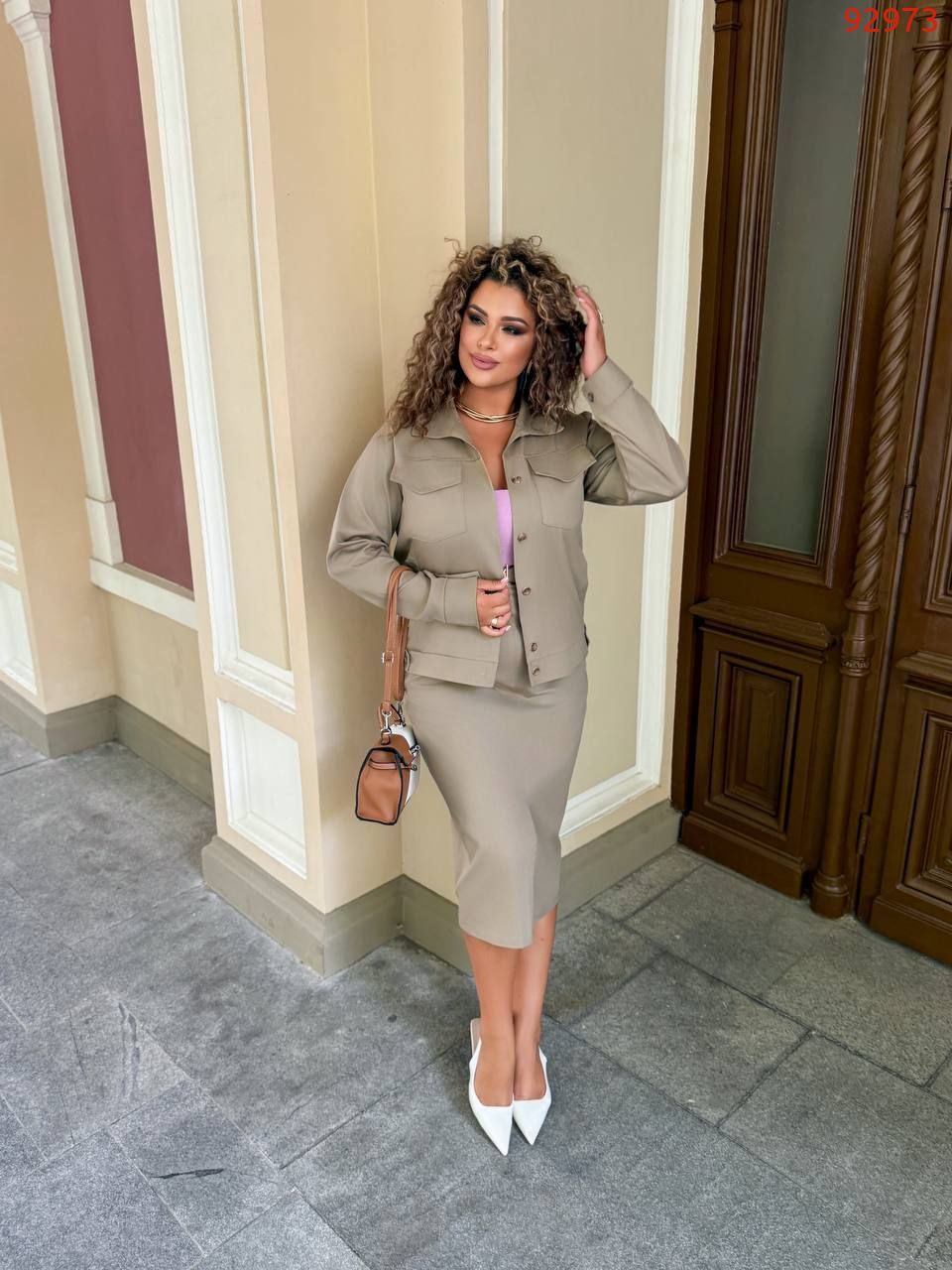Трендовий джинсовий костюм двійка. Куртка+спідниця з розрізом.