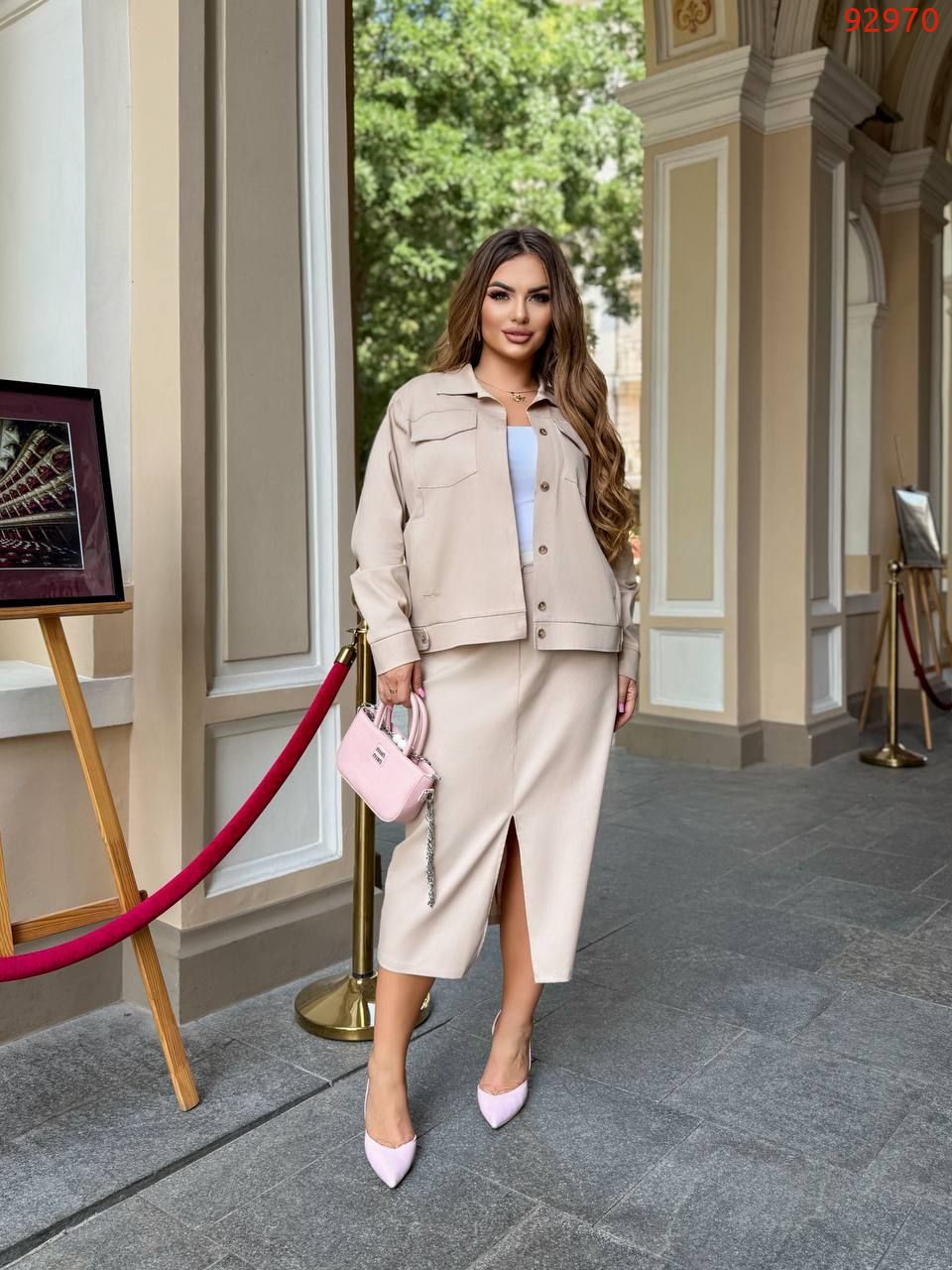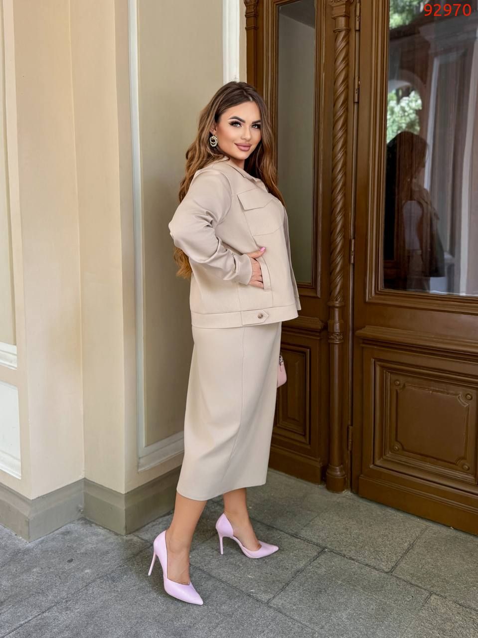 Трендовий джинсовий костюм двійка. Куртка+спідниця з розрізом.
