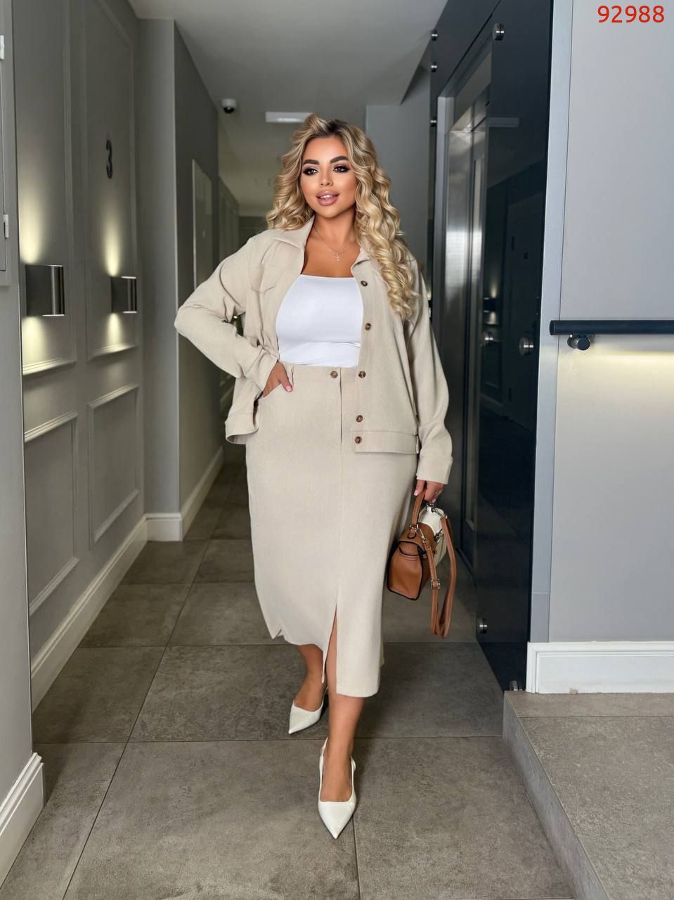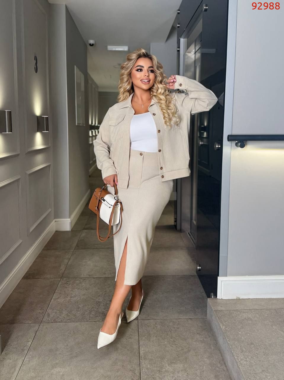 Трендовий костюм двійка. Куртка+спідниця з розрізом.