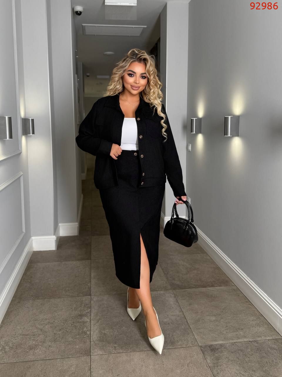 Трендовий костюм двійка. Куртка+спідниця з розрізом.