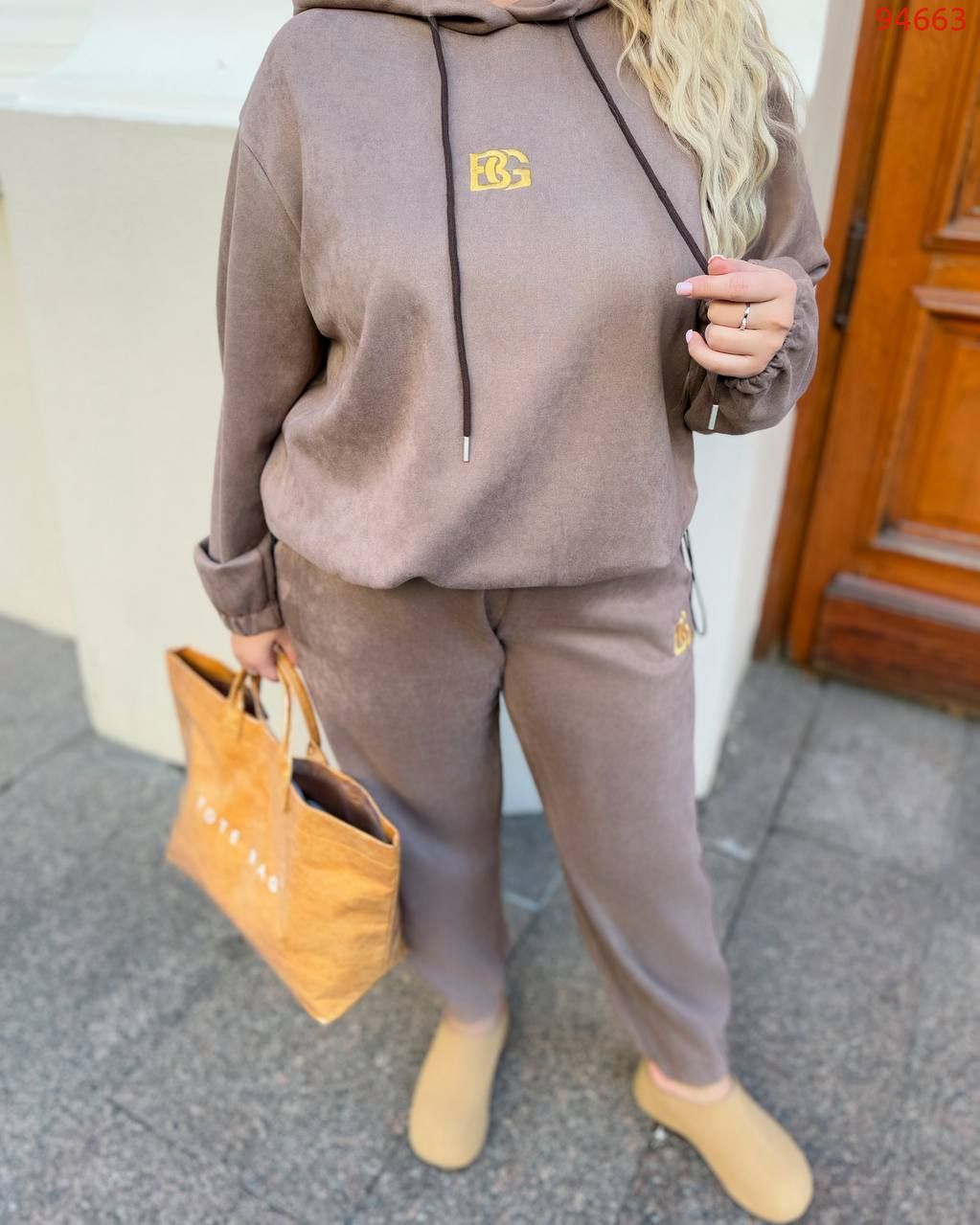 Стильний спорт костюм з вишивкою для прогулянок.Оверсайз.Худі регулюється затяжками по низу.Завдяки цьому ви зможете носити його як подовженним так піднятим .