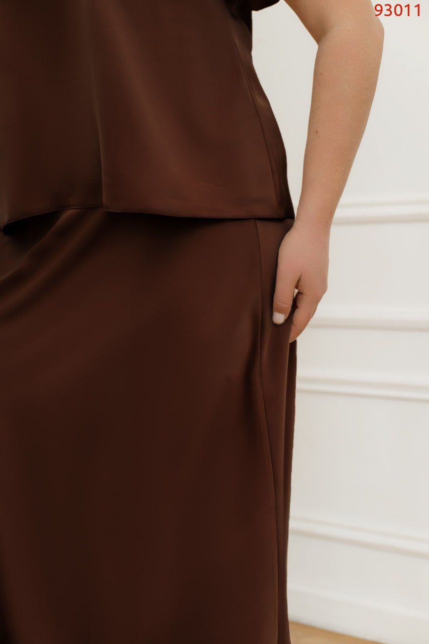 Неймовірний костюм з щільної атласної тканини з блузкою та спідницею підкорить найзавзятіших модниць. Завдяки легкій тканині Ви відчуєте особливий комфорт, а її текстура допоможе підкреслити вигини тіла.