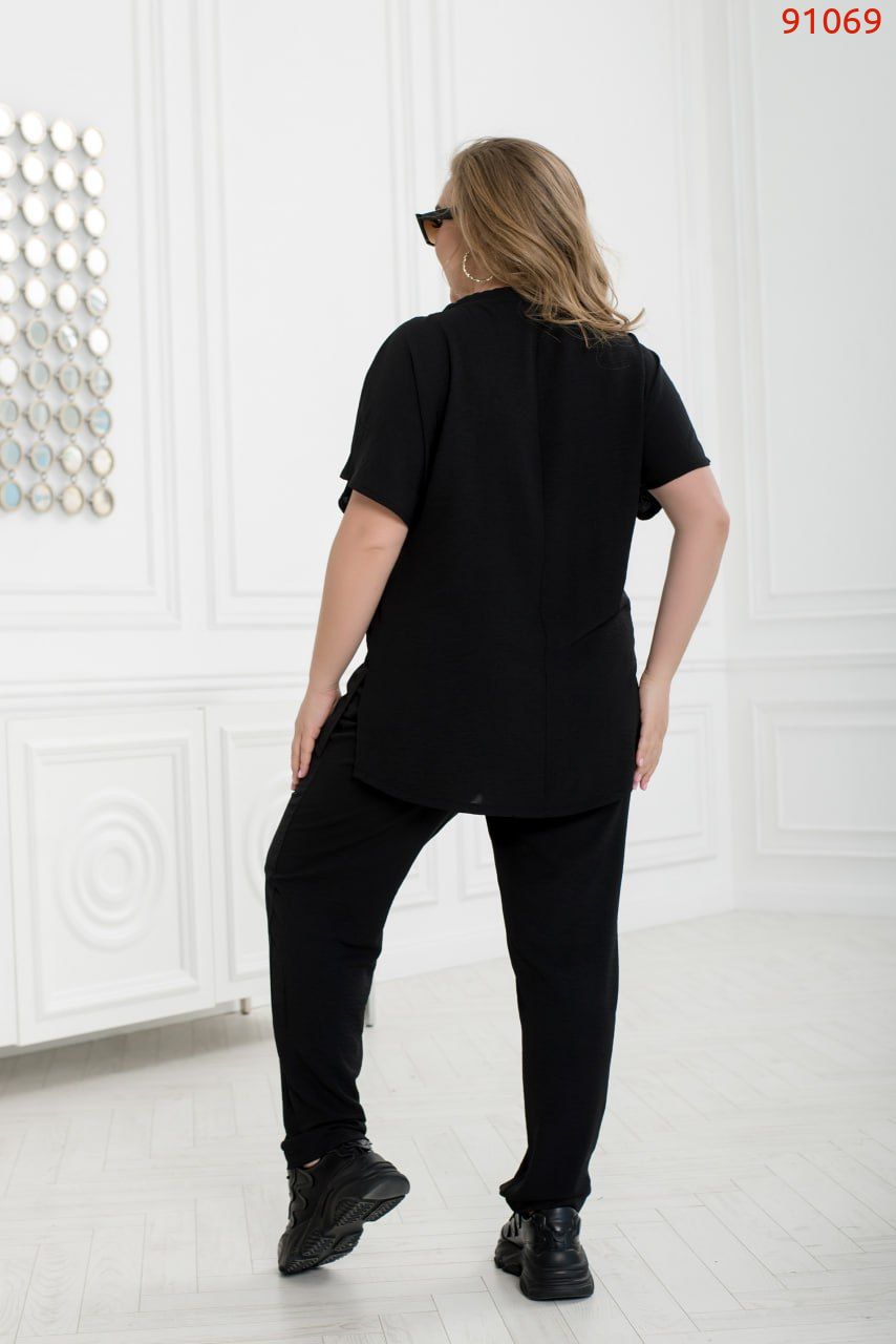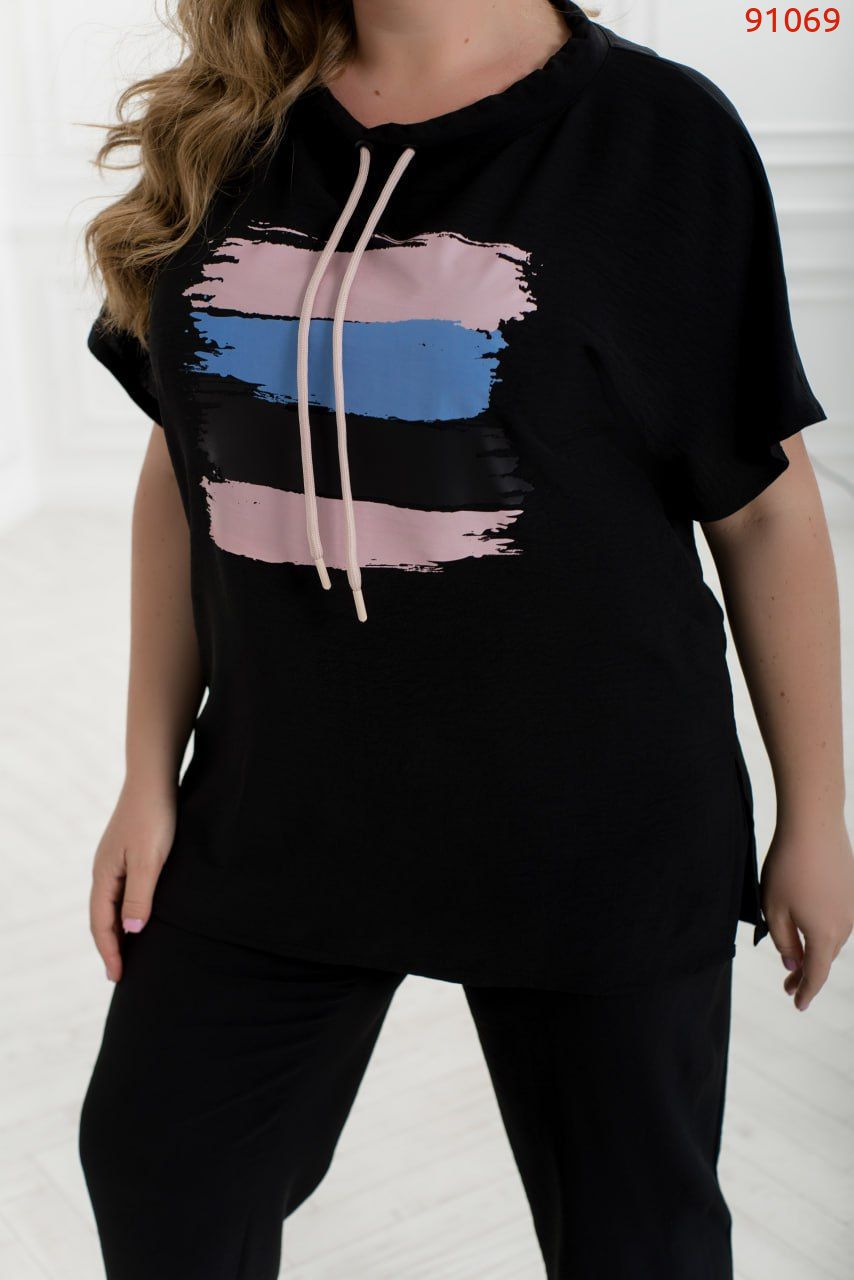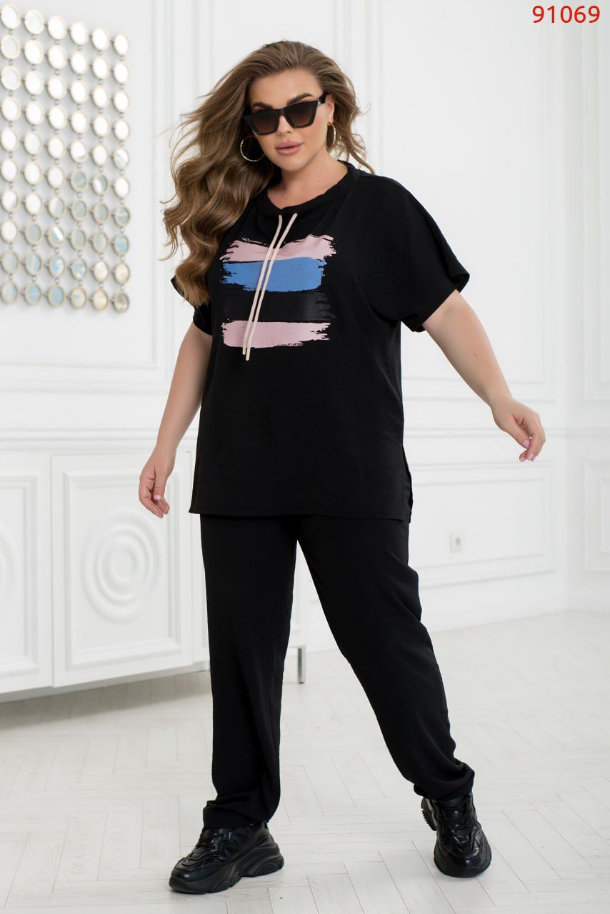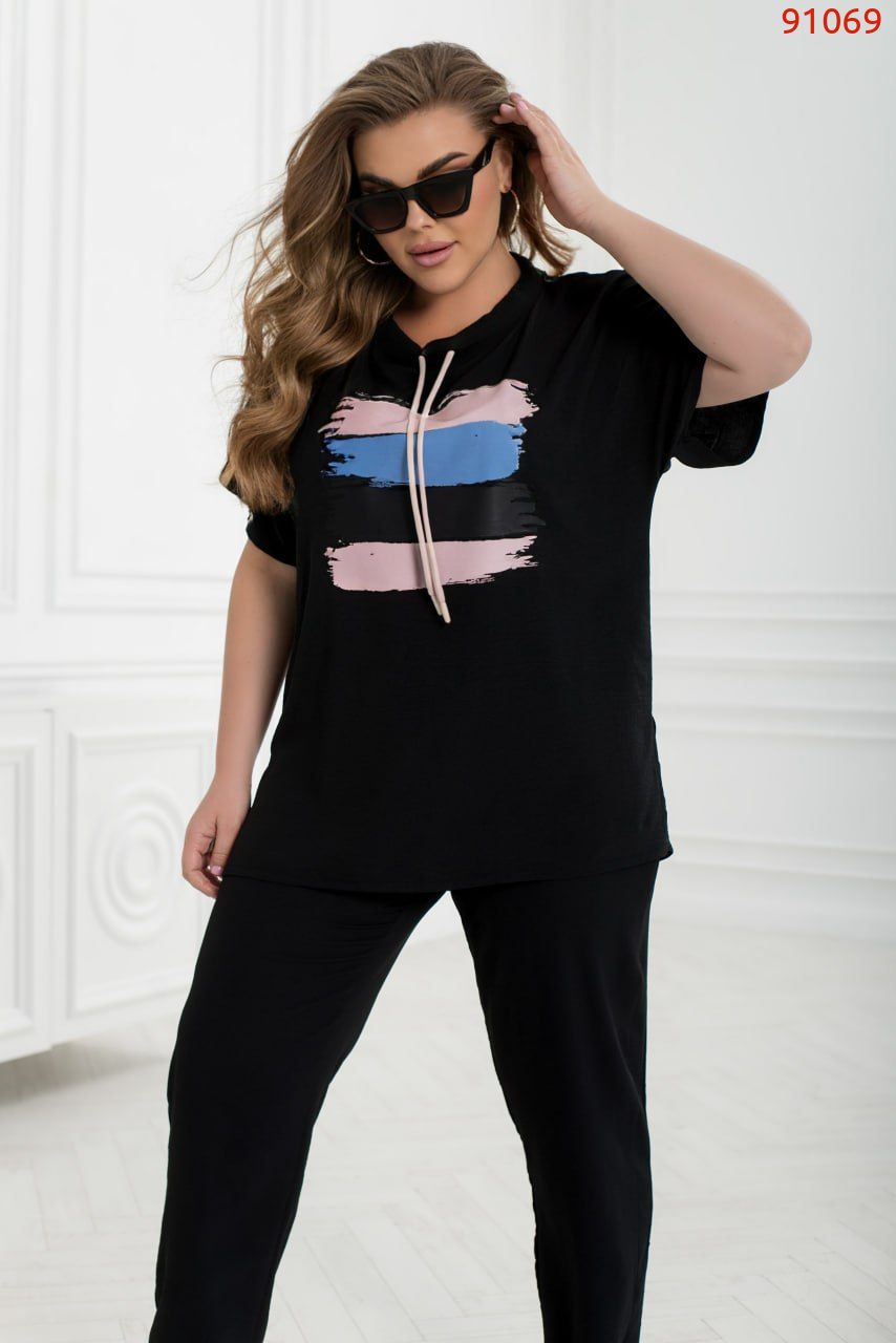Цей костюм створений для комфорту в кожному русі. Невагома футболка з рухомим декоративним шнурком у напівкруглому вирізі горловини і цільнокроєний короткий рукав дозволяють насолоджуватися носінням вироба.. На основі розміщено яскраву декоративну наліпку. Штани прямого крою з гумкою в талії мають бічні кишені для дрібниць.